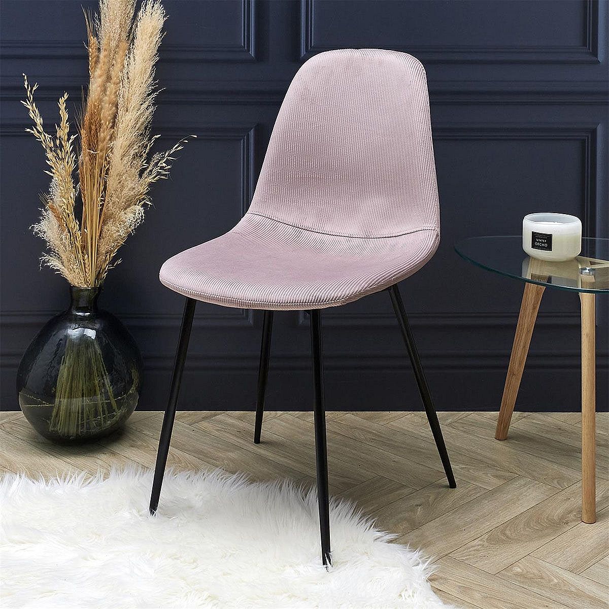 ALESSIA - Lot de 6 Chaises Velours Côtelé Roses