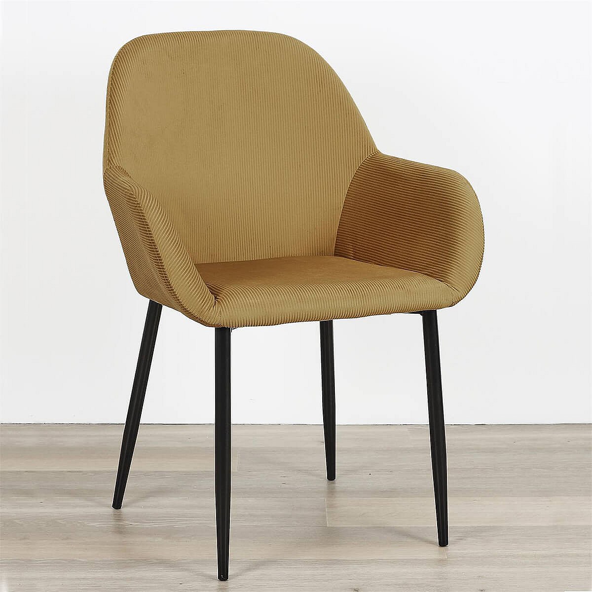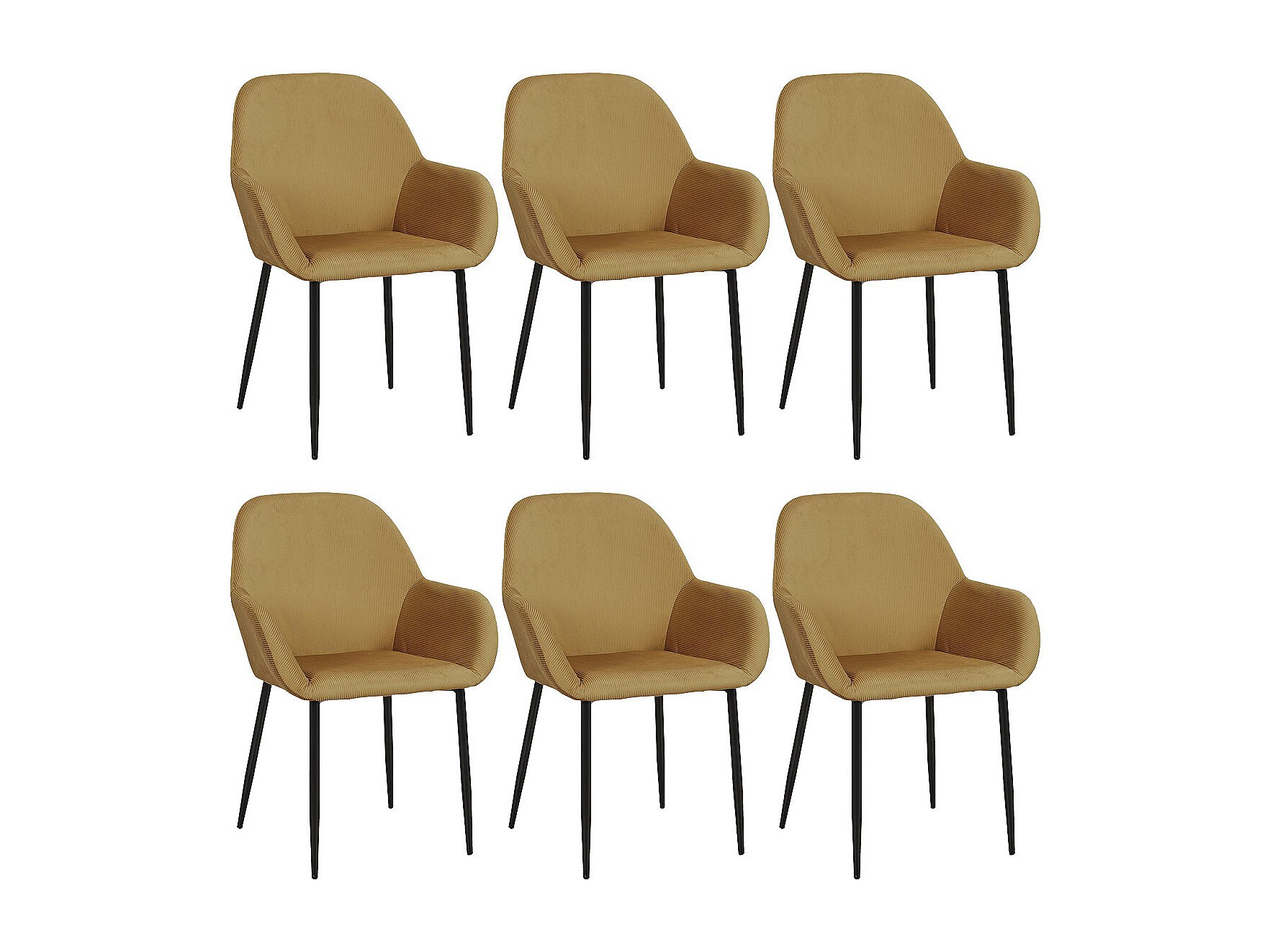 ALESSIA - Lot de 6 Fauteuils Velours Côtelé Jaune Moutarde