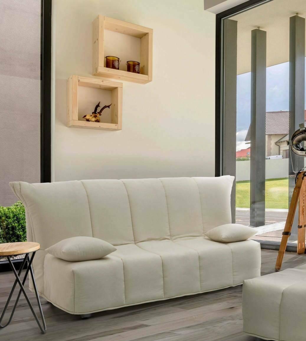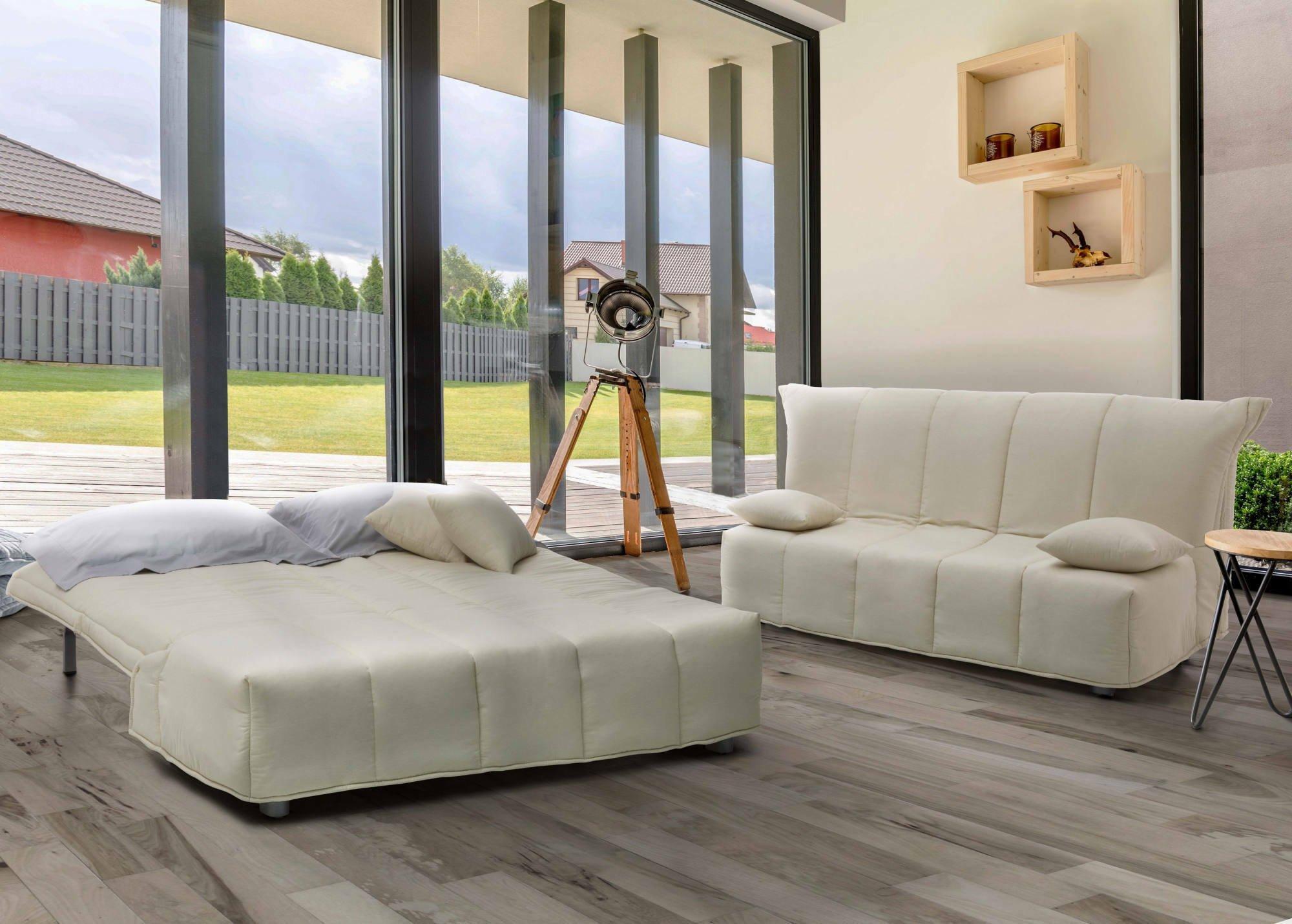 Alisee Canapé-lit, canapé 2 places, 100% Made in Italy, Canapé de salon avec ouverture trolley, en tissu rembourré, avec coussins inclus, 125x90h85 cm, Beige