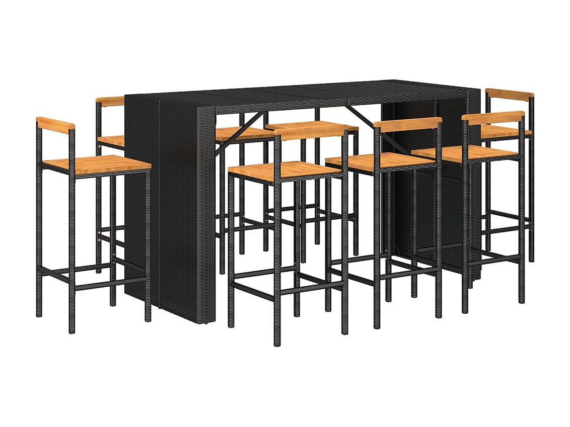 Allouez Ensemble de bar jardin 9 pcs noir poly rotin/bois massif acacia