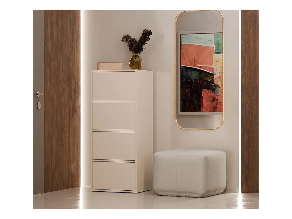 ALMA - Commode haute de rangement 4 portes avec ouverture tip-on - Beige cachemire