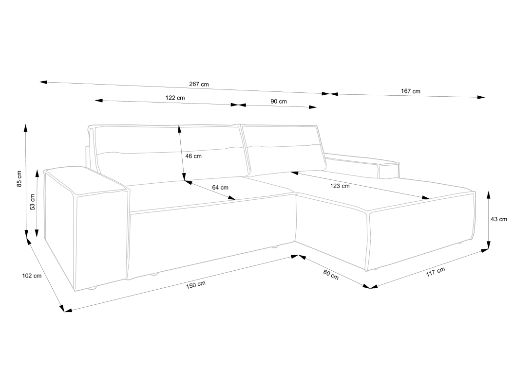Canapé d'angle droit convertible en velours côtelé grosses côtes vert AMELIA