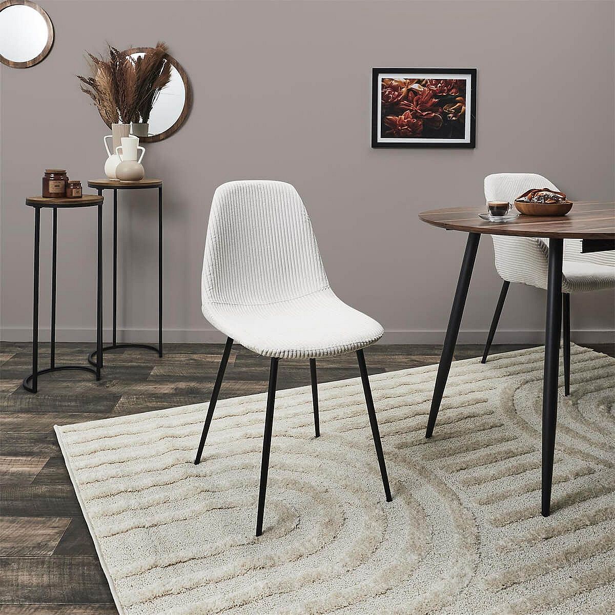 AMORY - Lot de 2 chaises en velours côtelé coloris crème