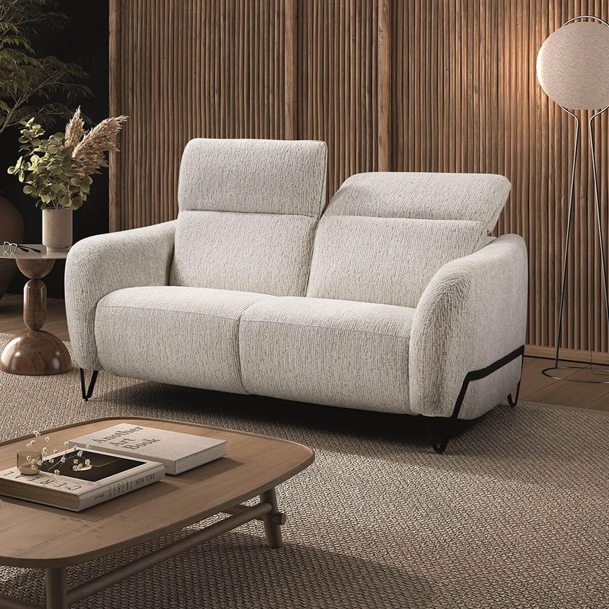 Canapé fixe 2 places tissu polyester beige avec têtières inclinables manuelles - AMSTEN