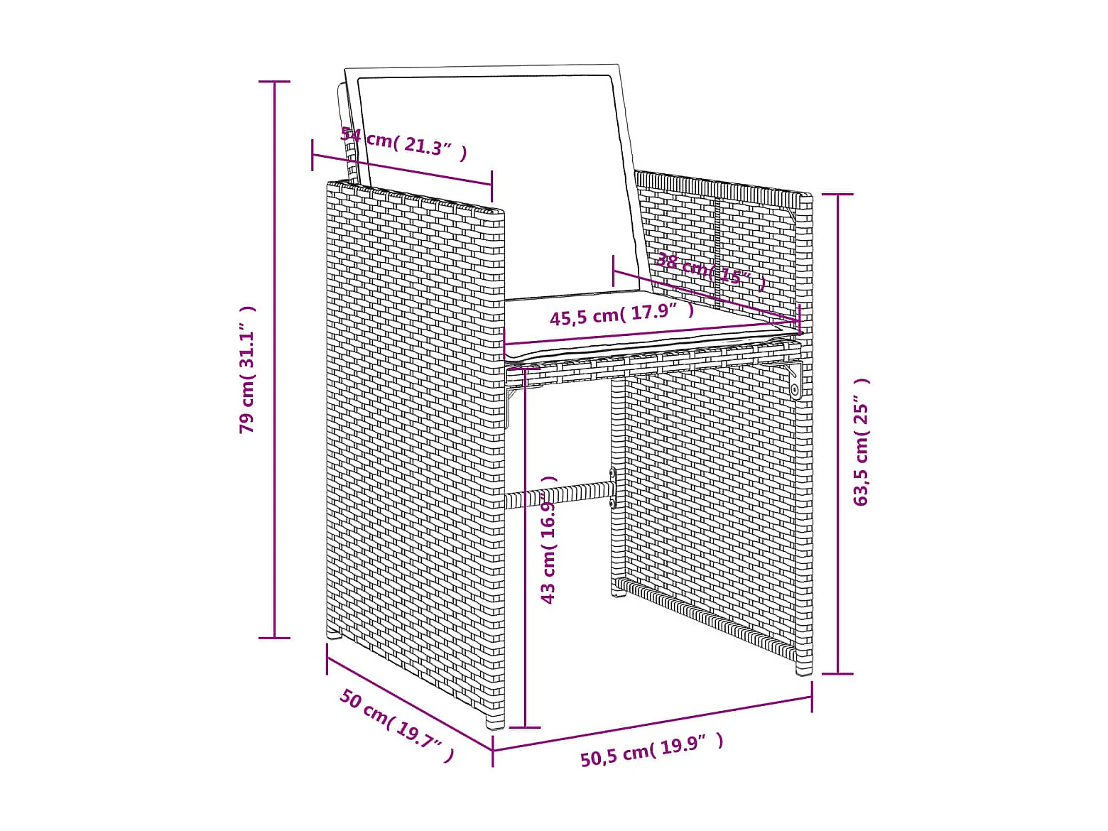 An Daingean Ensemble à manger de jardin coussins 13 pcs gris résine tressée