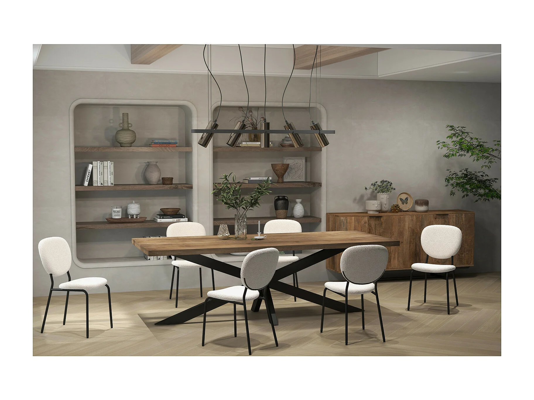 ANAIS-Chaise en tissu bouclette Ecru et métal noir (x4)