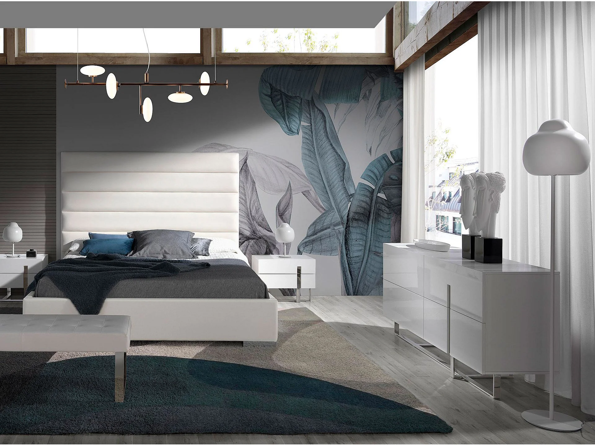 Buffet en bois blanc et acier chromé 3052 ANGEL CERDA