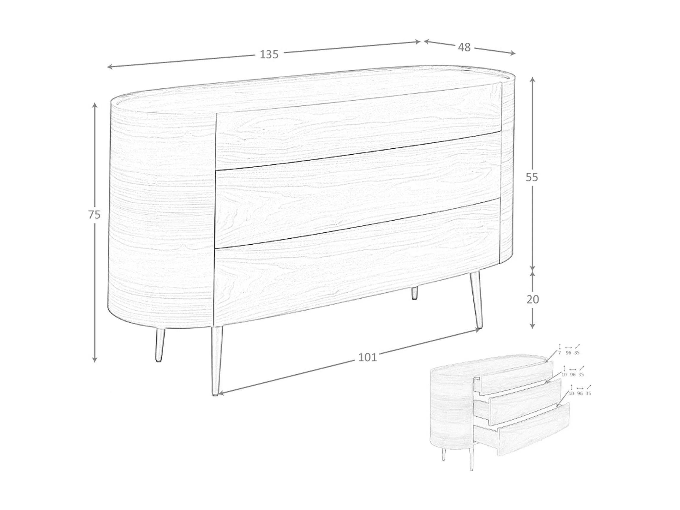 Commode en noyer avec plateau en verre trempé 7073 ANGEL CERDA