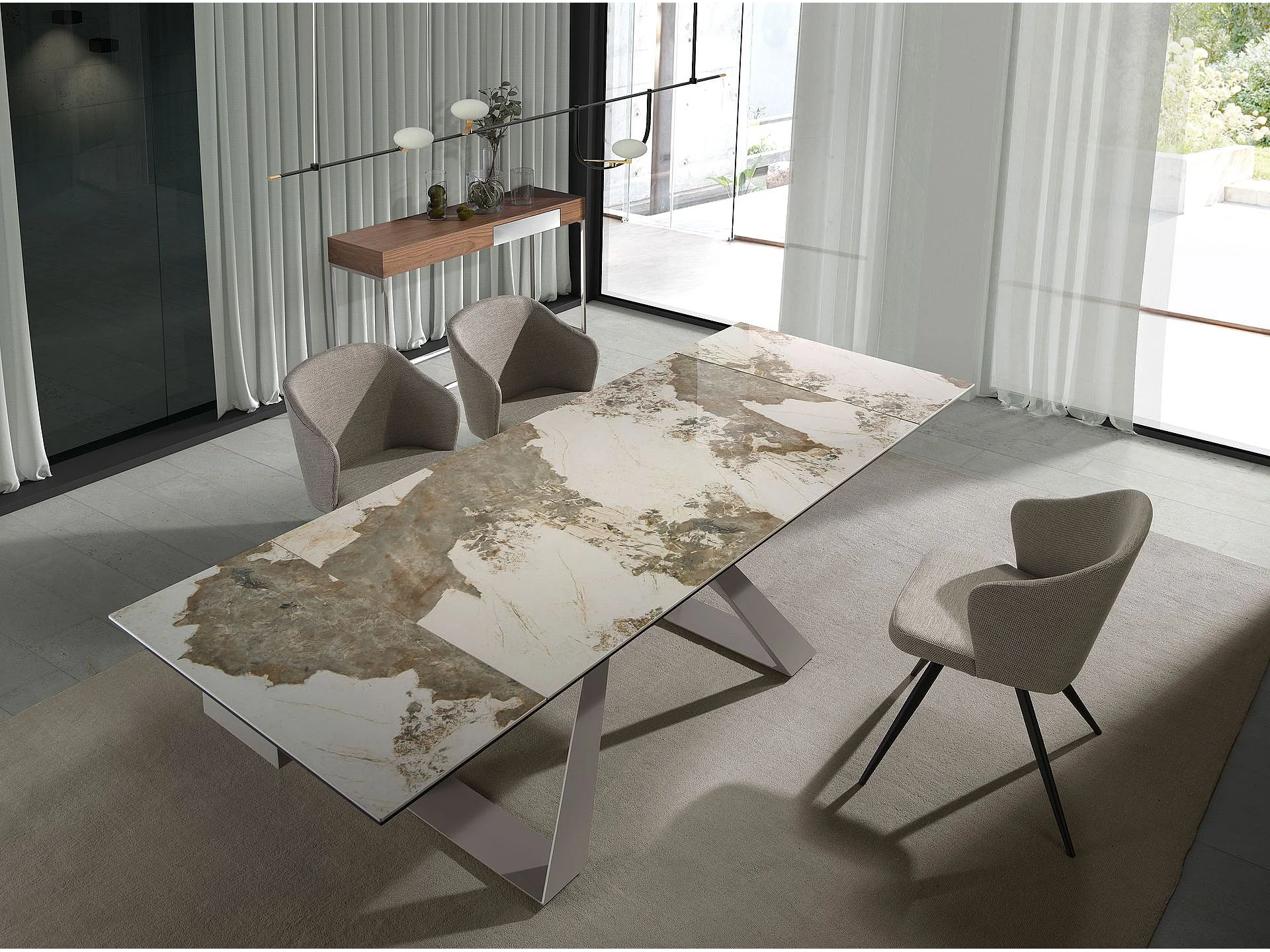 Console rectangulaire en noyer et acier chromé 3111 ANGEL CERDA
