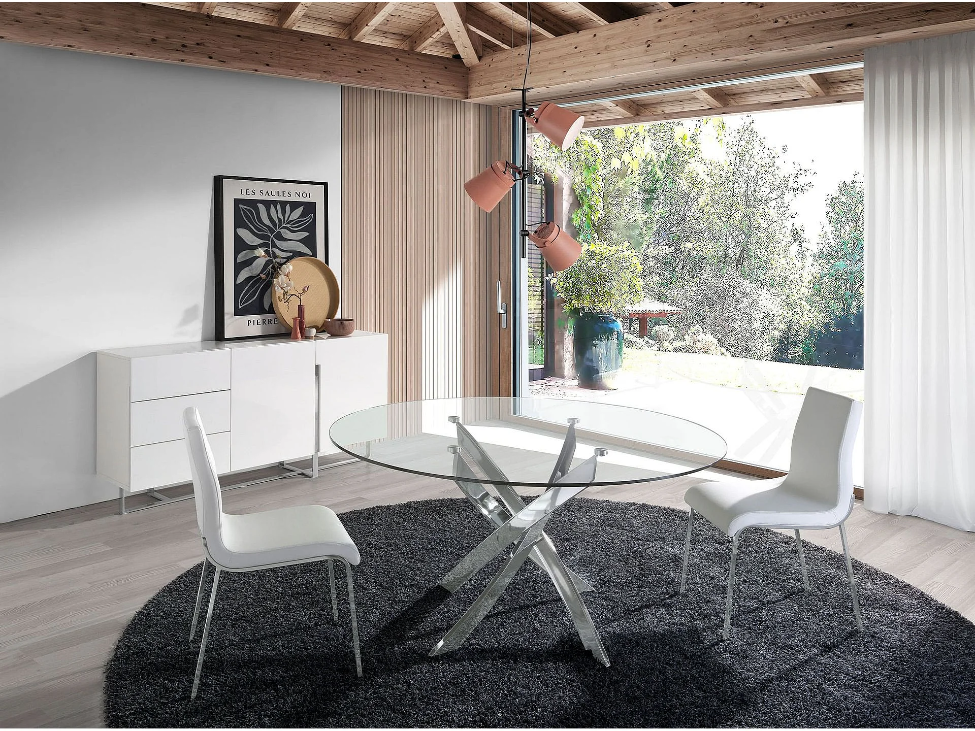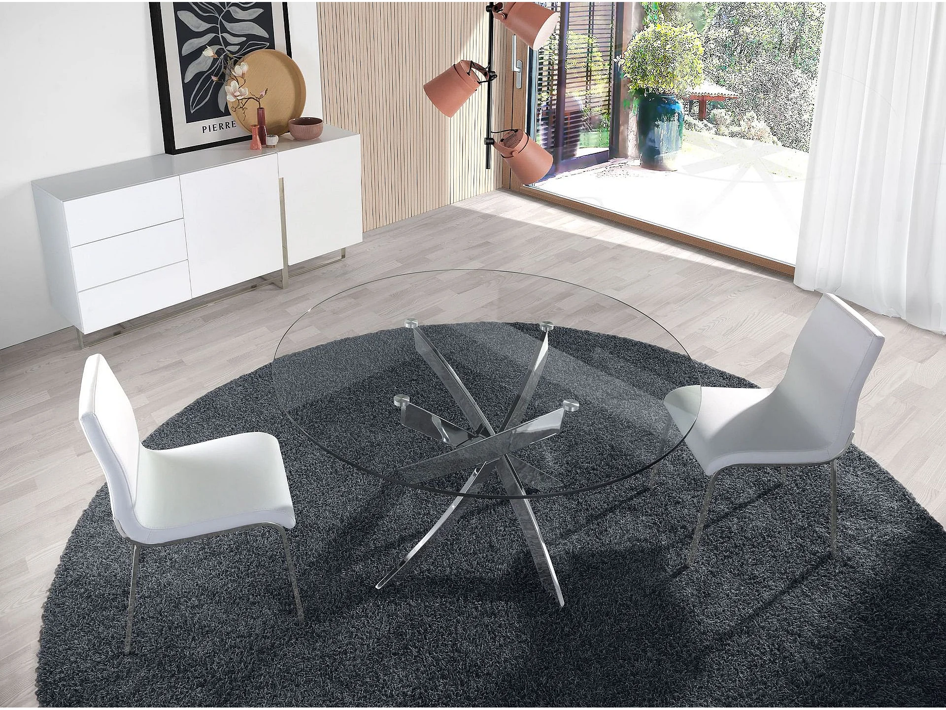 Table à manger ronde verre trempé et acier chromé 1061-Ø120 ANGEL CERDA