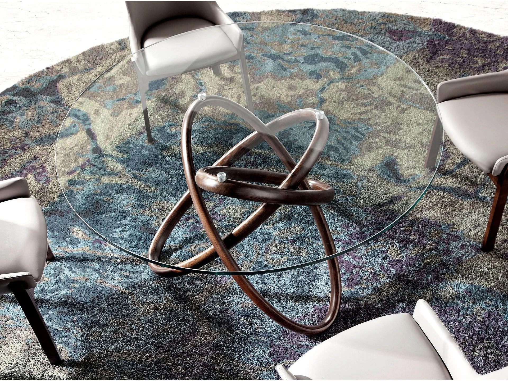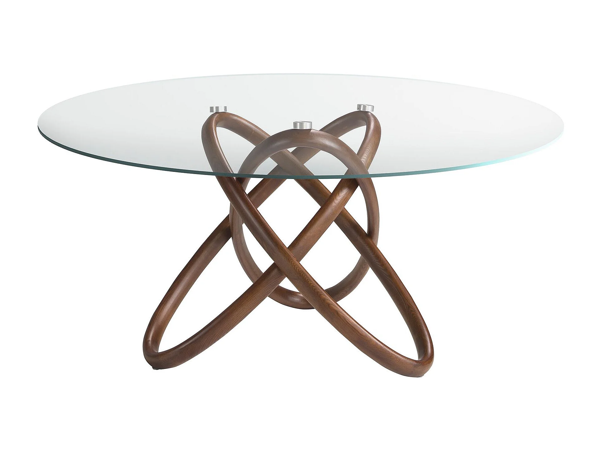 Table à manger ronde verre trempé et noyer 1020-Ø150 ANGEL CERDA