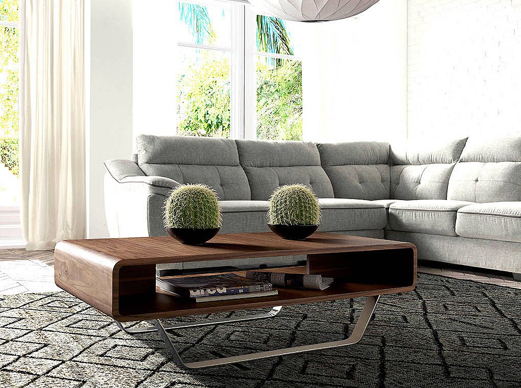 Table basse en bois de noyer et acier 2002 ANGEL CERDA