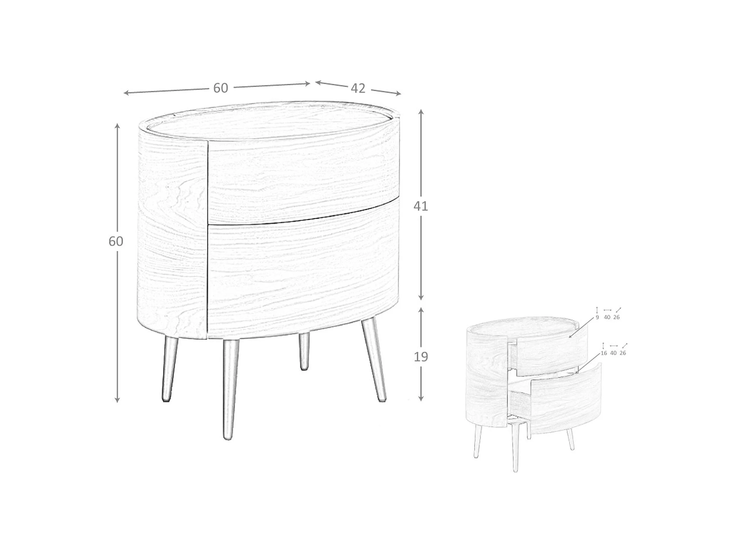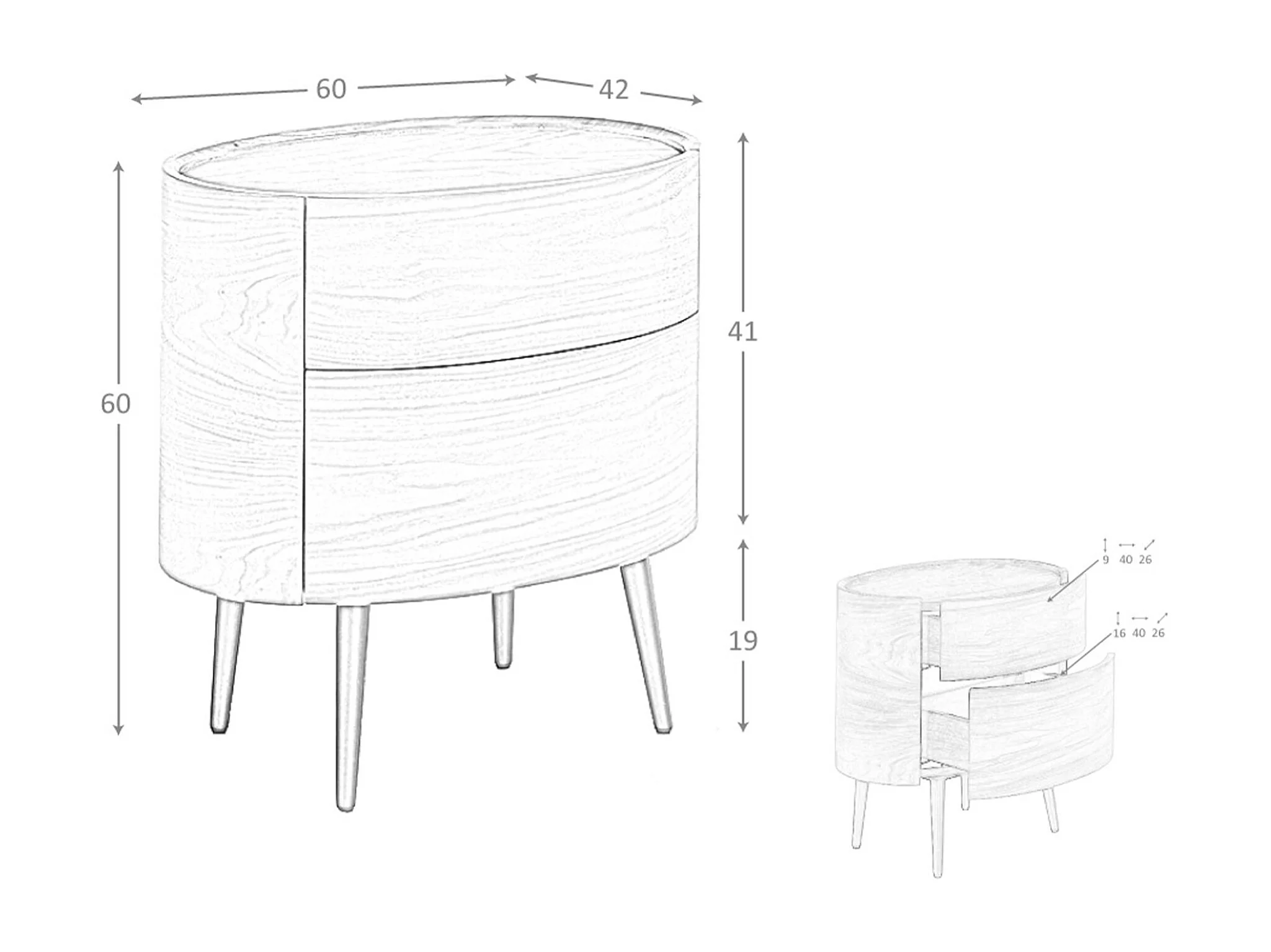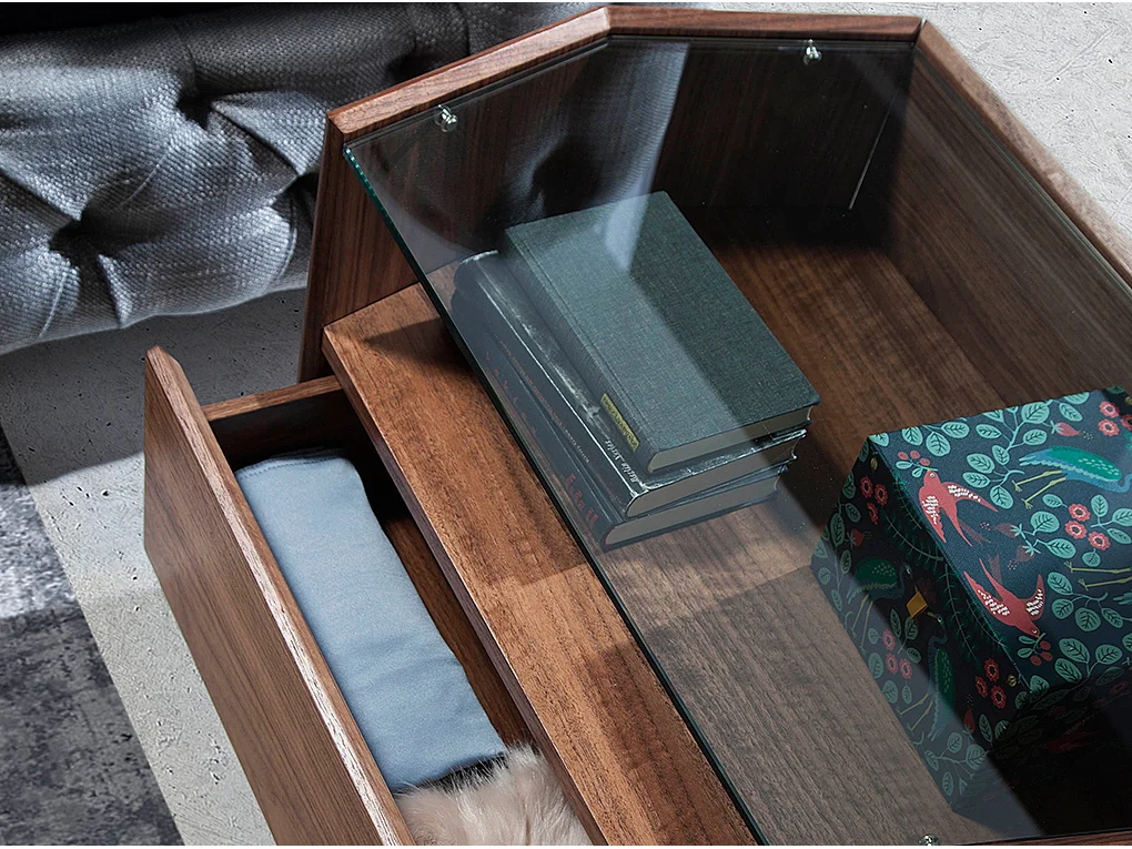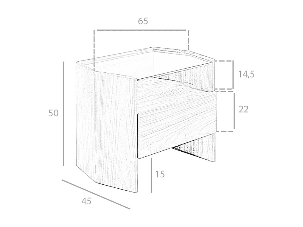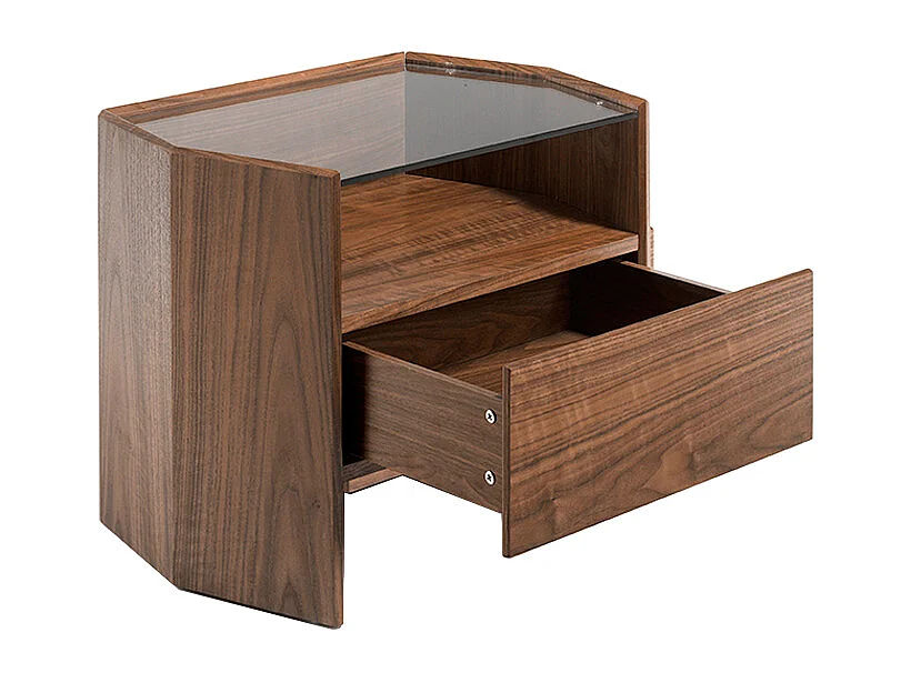 Table de chevet en noyer avec plateau en verre trempé 7072 ANGEL CERDA