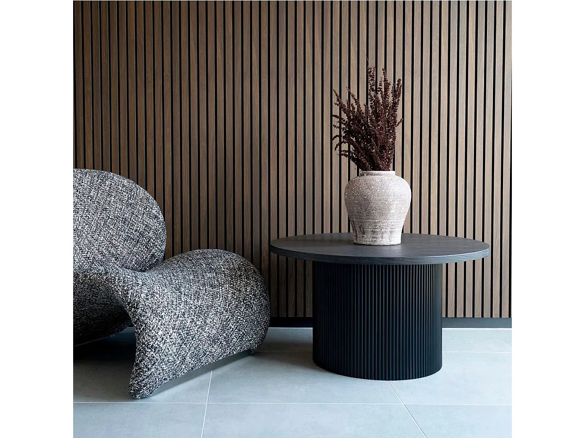 ANKARA - Table basse Ronde 80cm Pieds Relief MDF Effet bois foncé