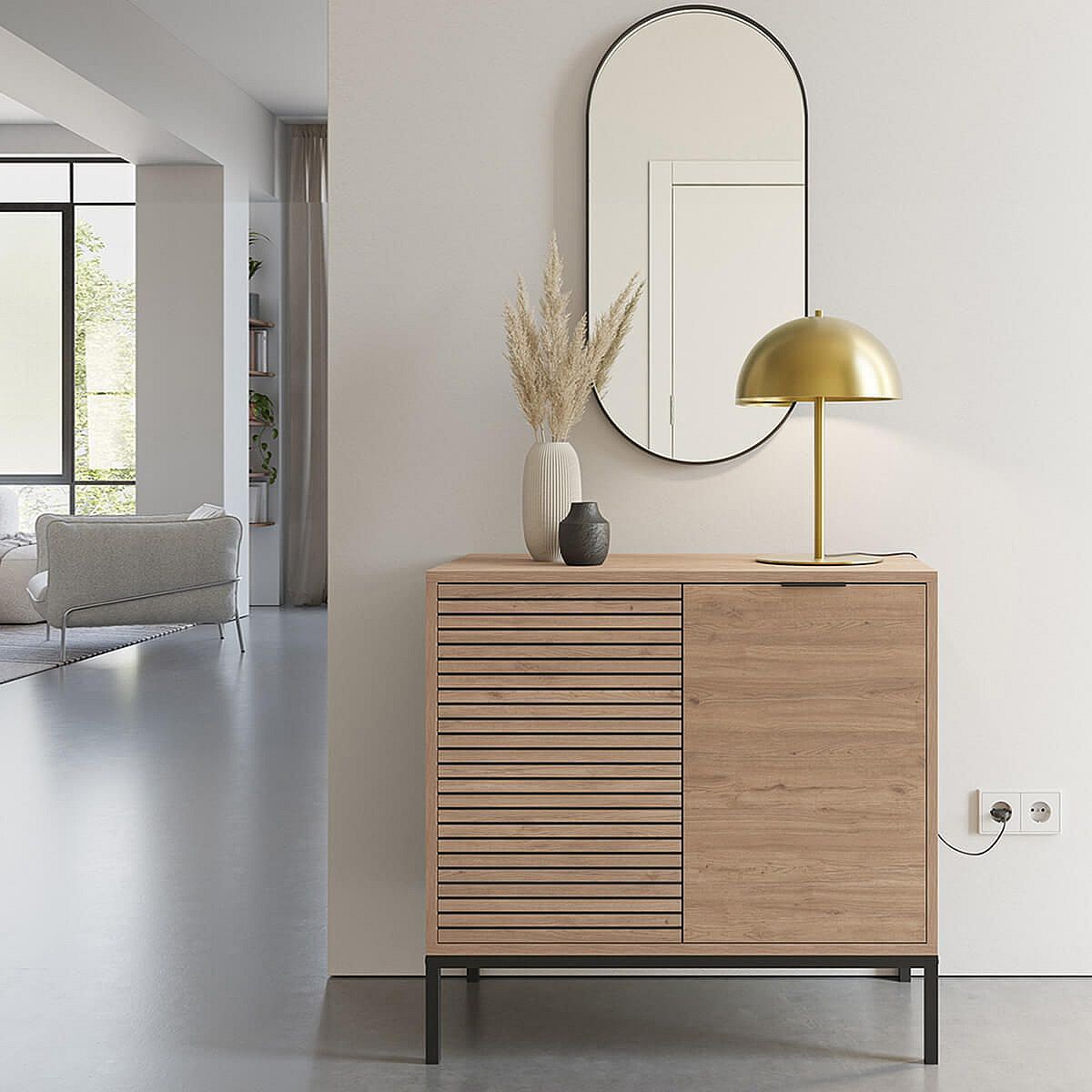 APPA - Rangement 2 Portes Aspect bois Tasseaux Pieds Métal