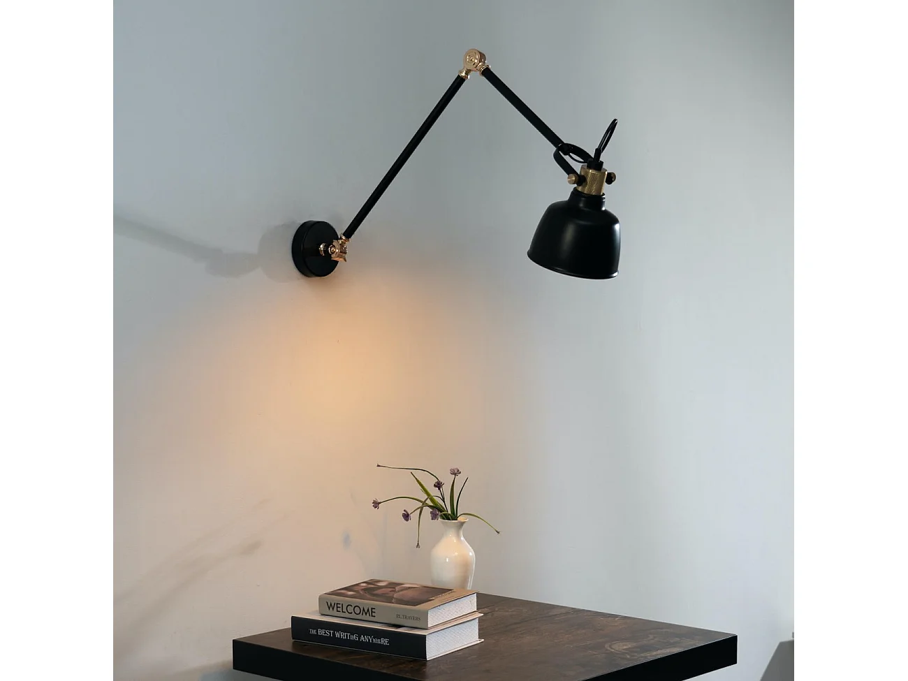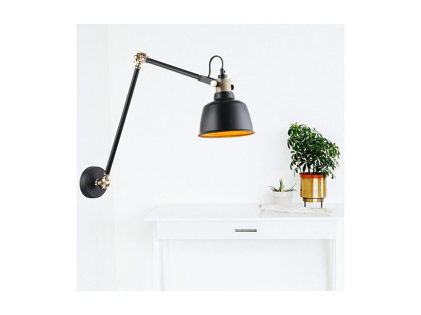 NETTLIFE Vintage Applique murale rétro E27 en noir industriel intérieur éclairage mural en bois cuir plastique (sans ampoule)