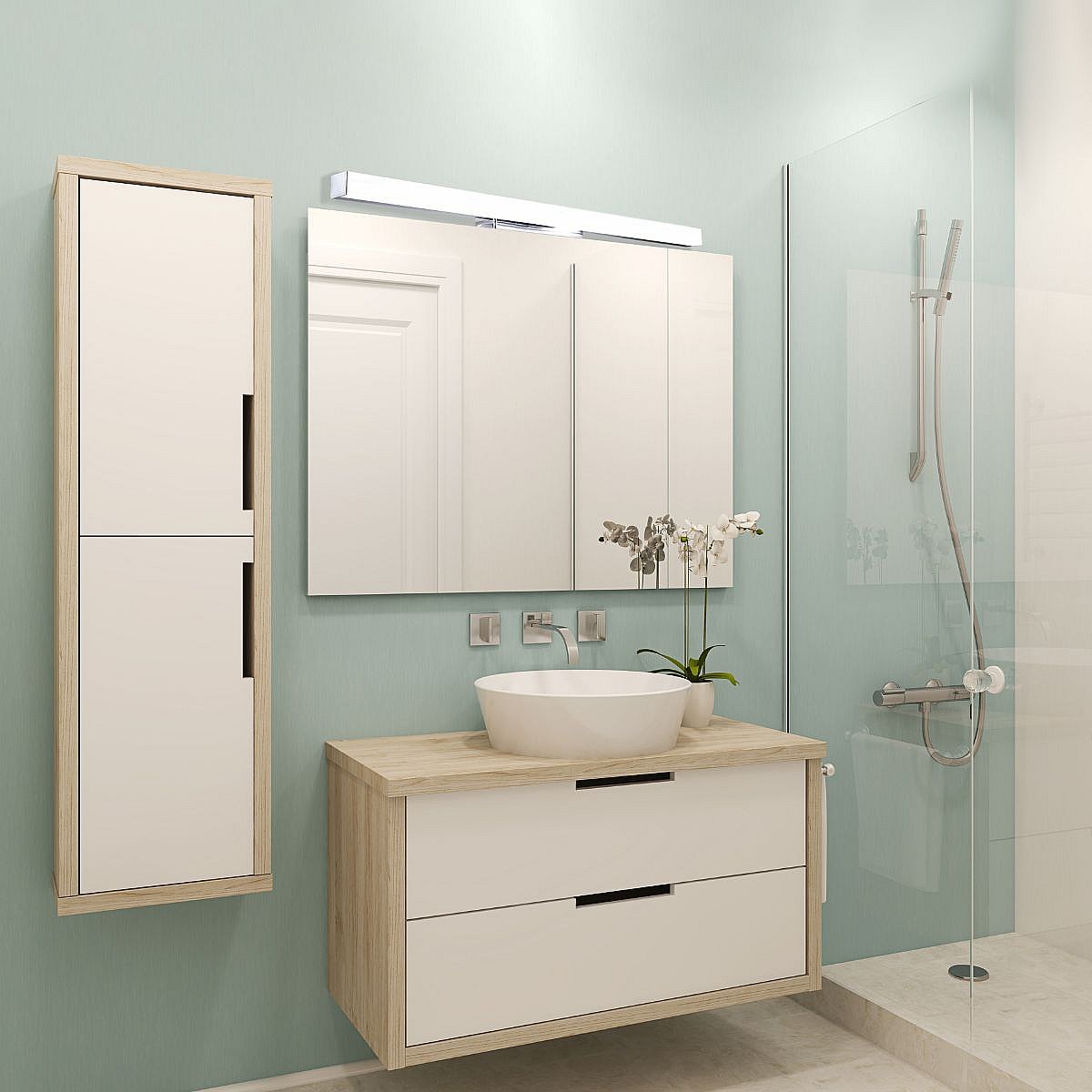 Applique de salle de bain 78cm chrome (20W 1600lm 4000K IP44) - Voltman