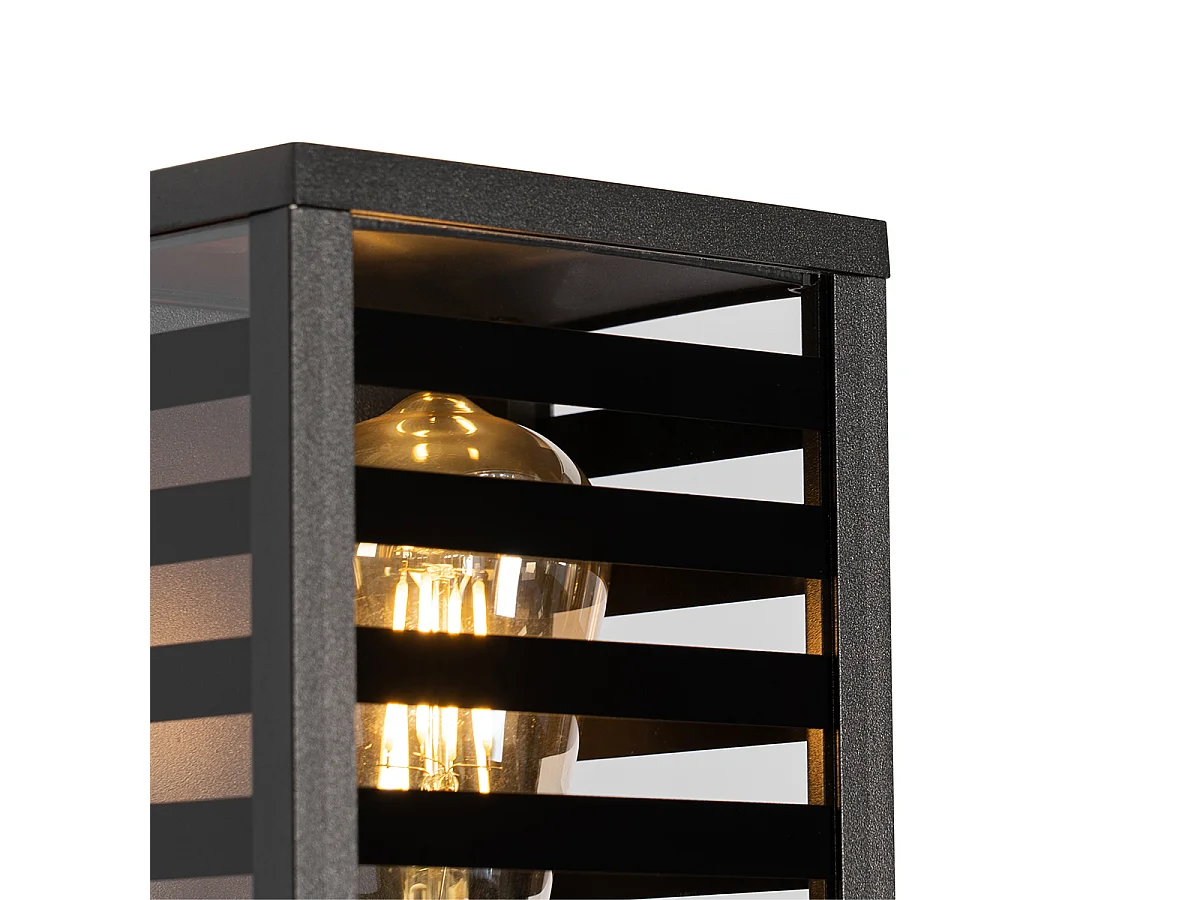 Lanterne murale d'extérieur noire avec verre nervuré IP44 - Charlois