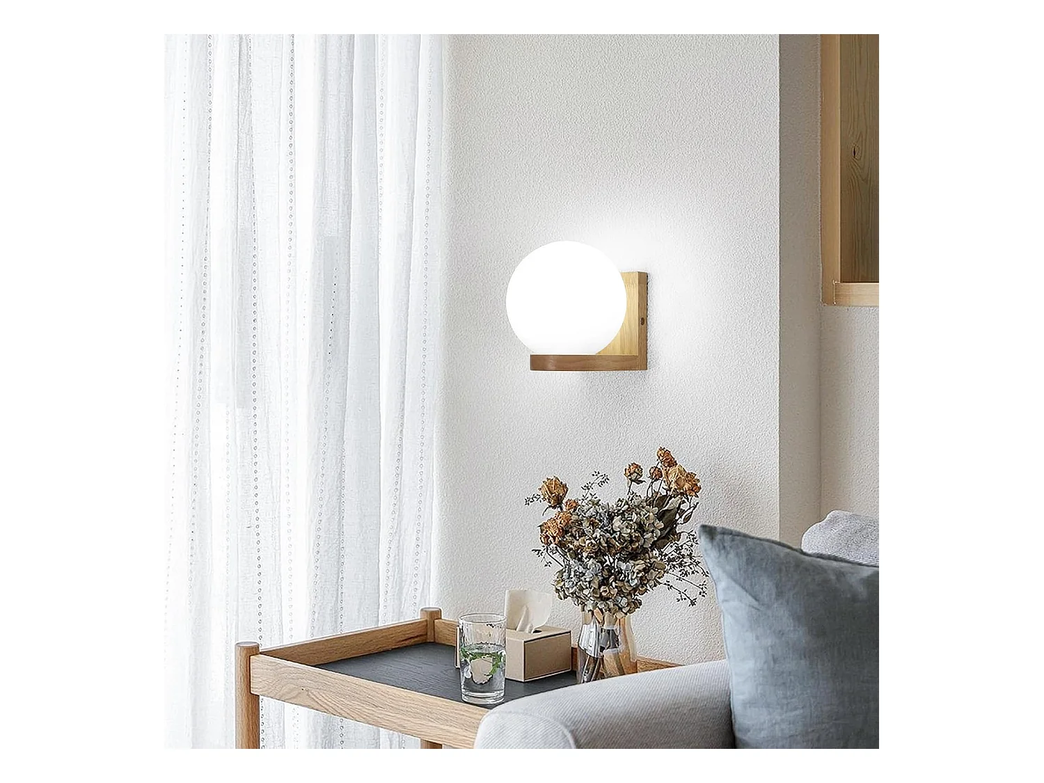 Applique Murale Intérieure Bois, Vintage E27 Lampe Murale Design Minimaliste, Abat-jour en Verre Applique Murale pour Chambre, Salon, Salle à Manger, Couloir, Café