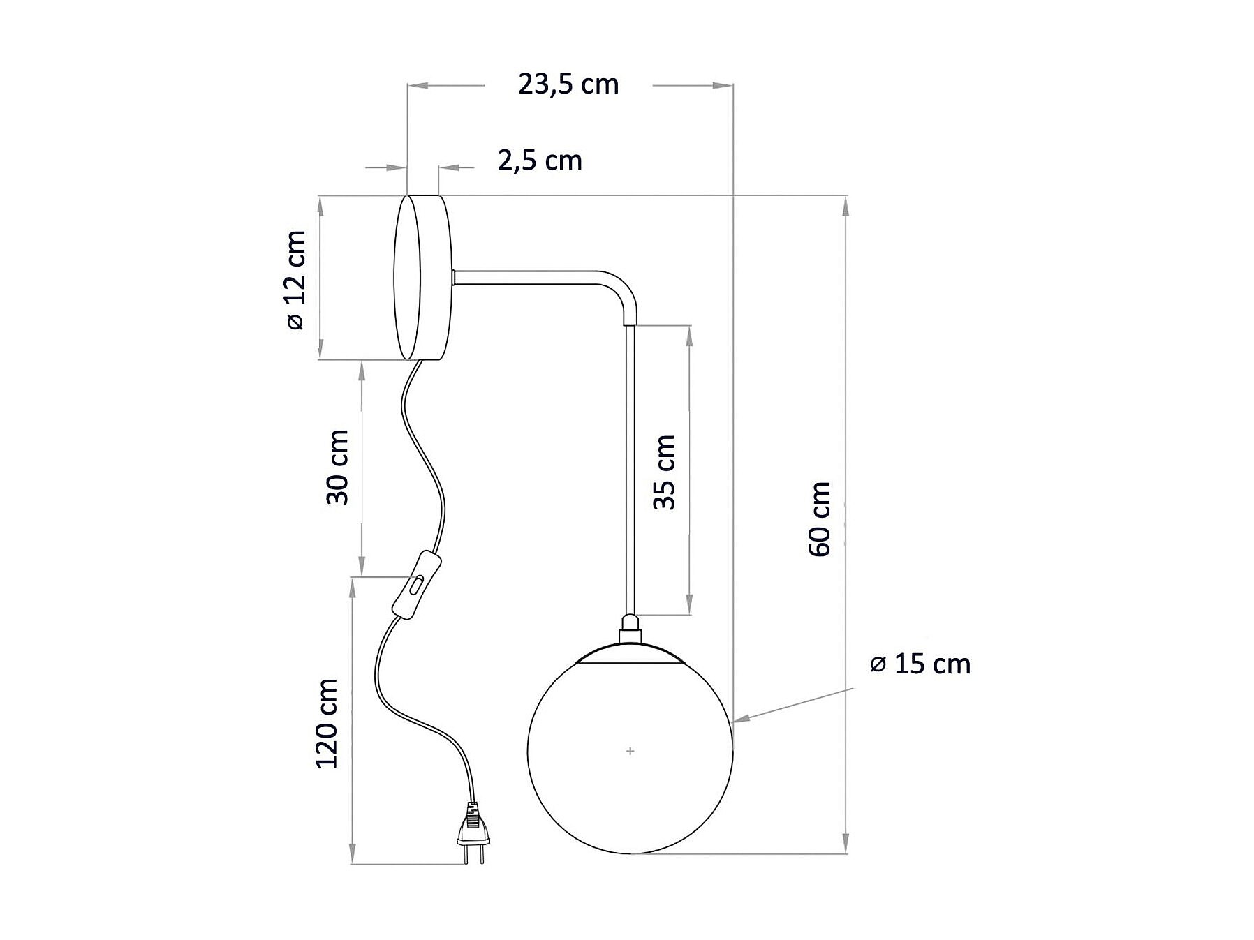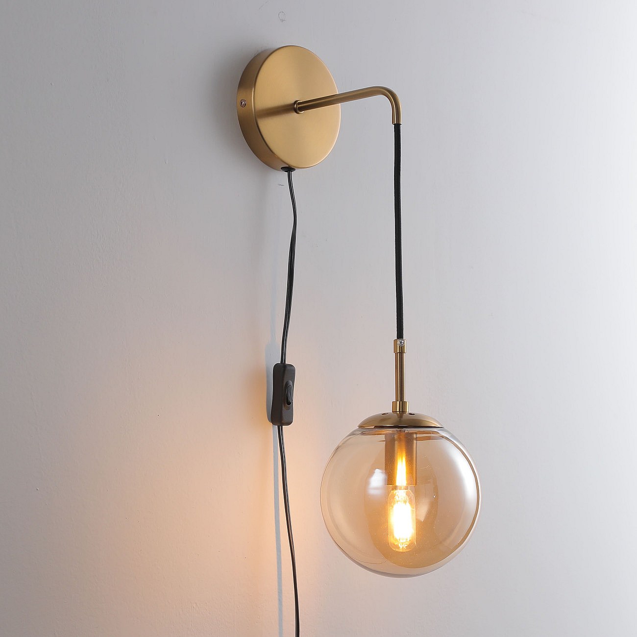 Applique dorée en verre avec câble et interrupteur - Robyn