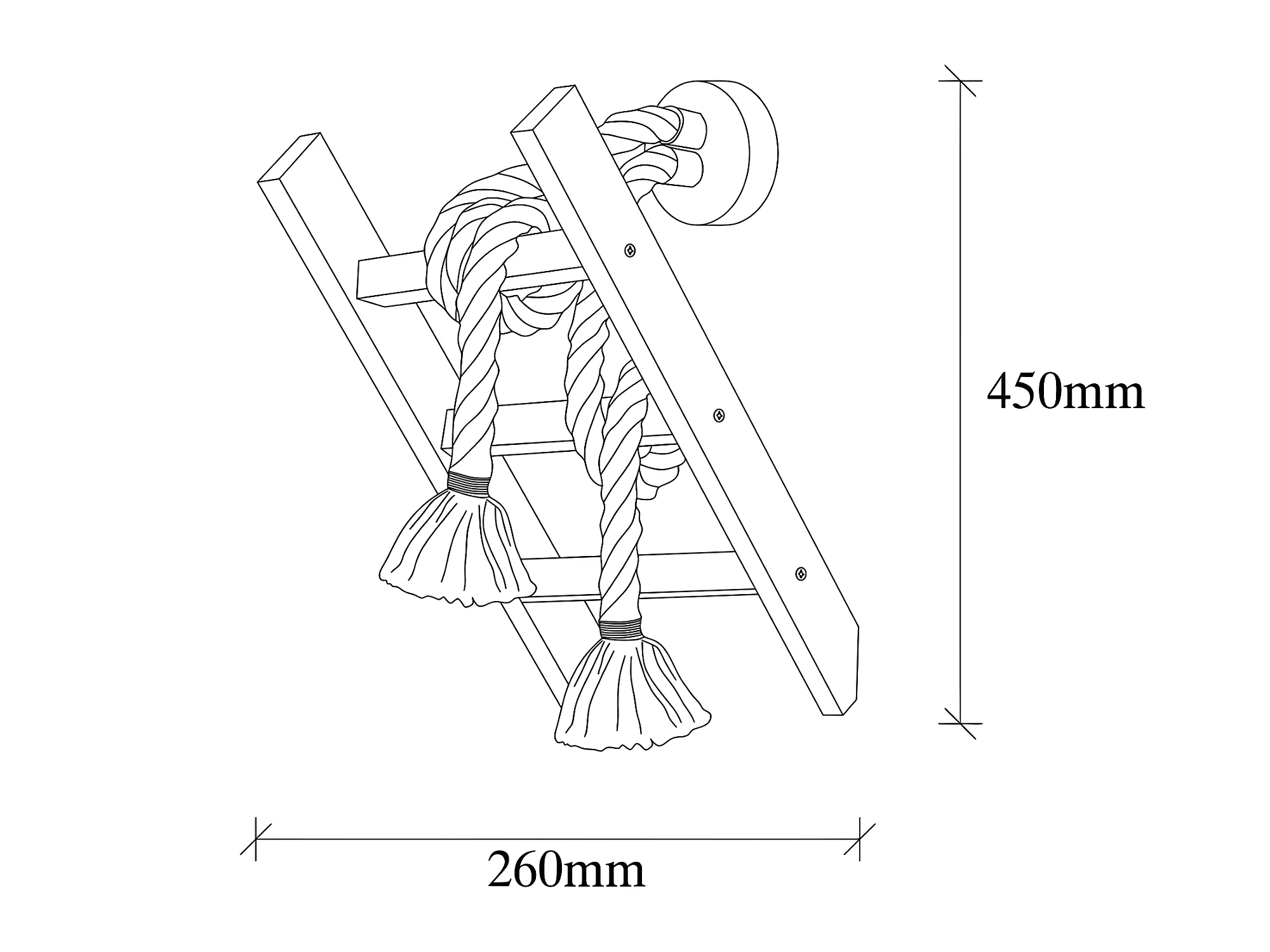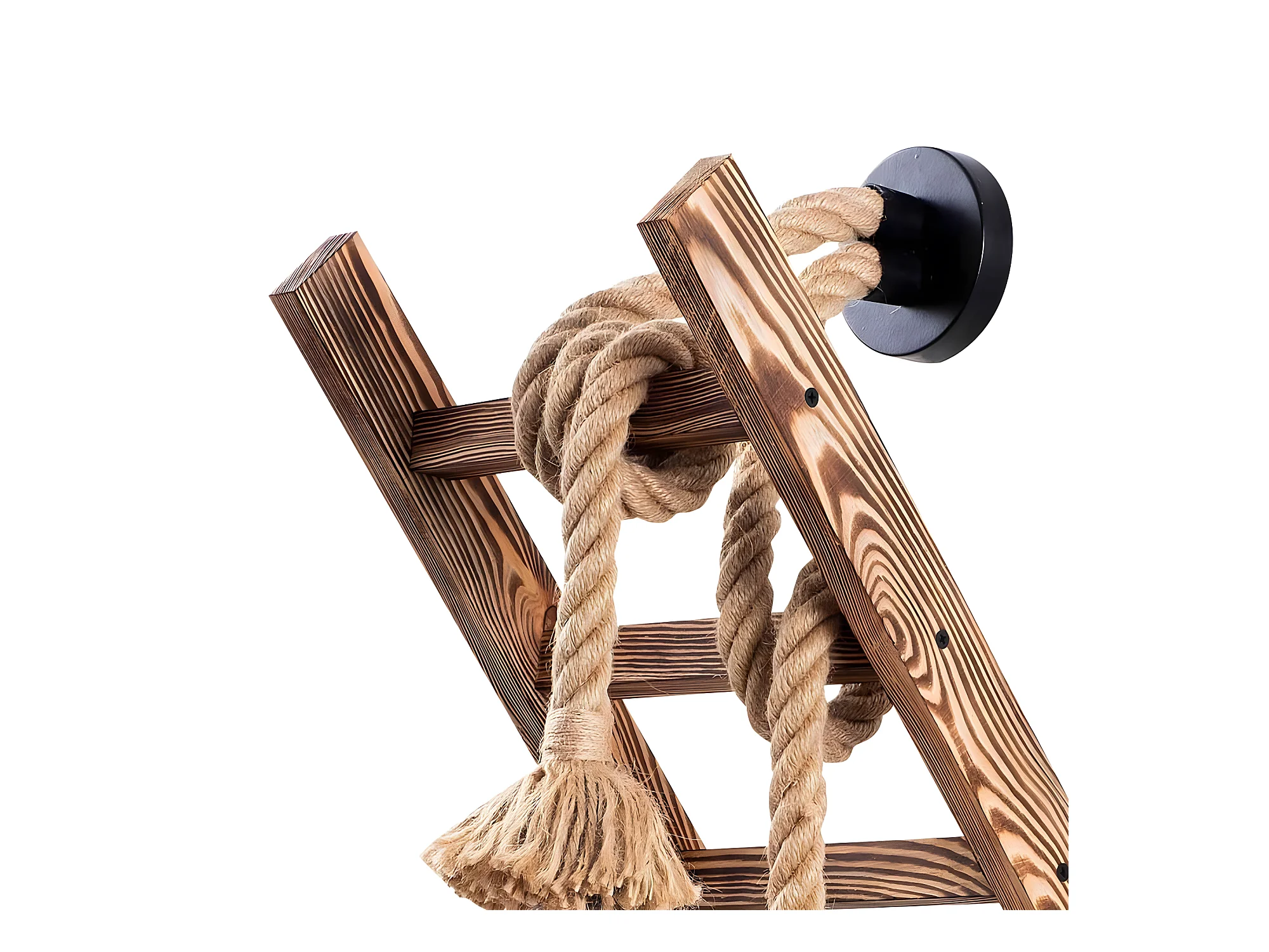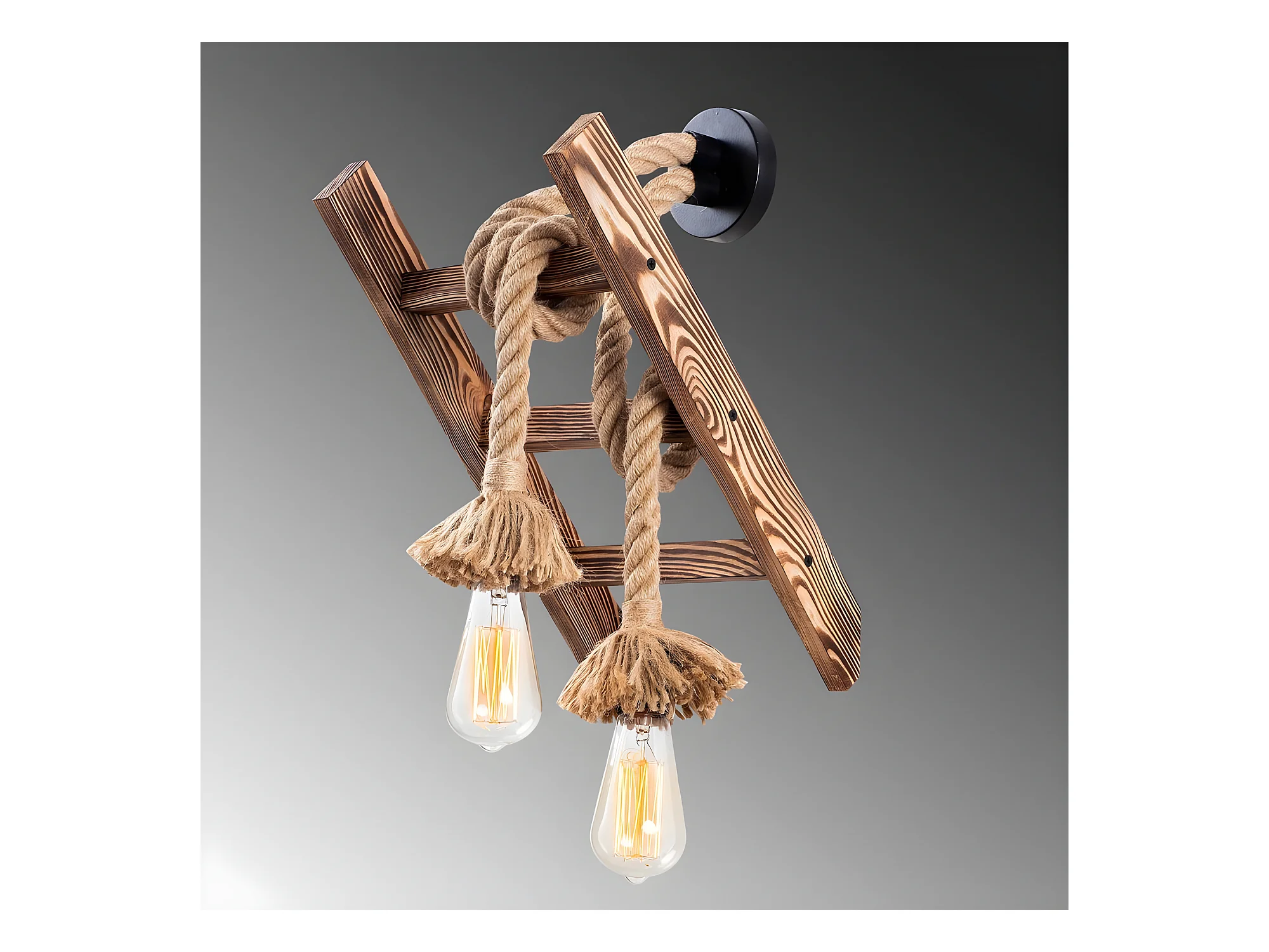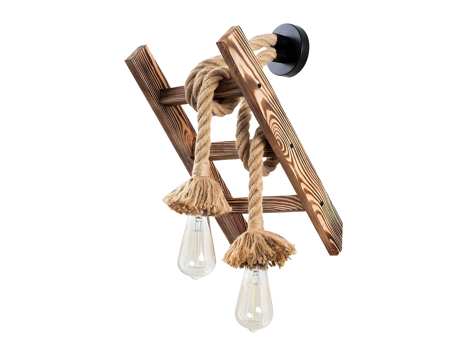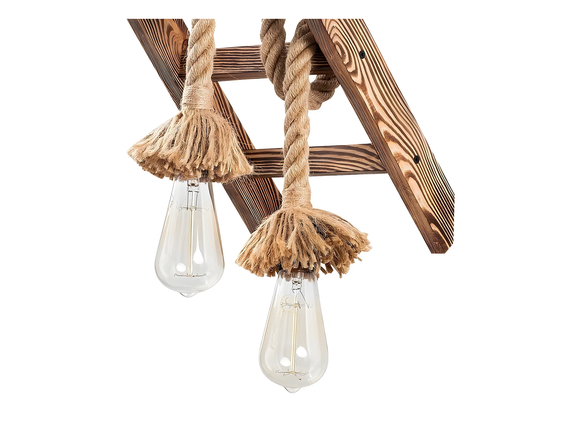 Applique Gentry style rustique avec échelle en bois et 2 cordes de suspension 2xE27