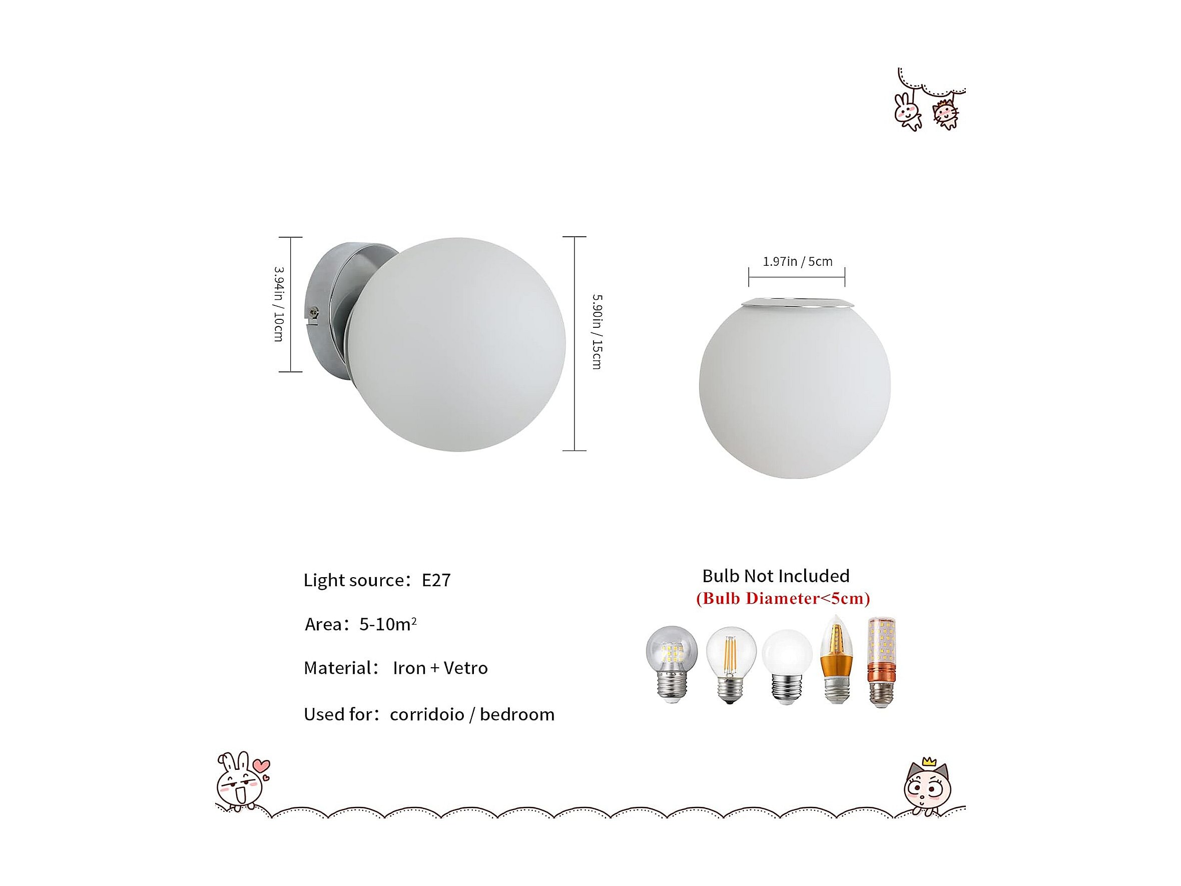 Applique Murale Intérieure, Lampe Murale Moderne, E27 Luminaire Mural Boule de Verre 15cm pour Chambre, Salon, Couloir Escalier, Balcon (sans ampoule