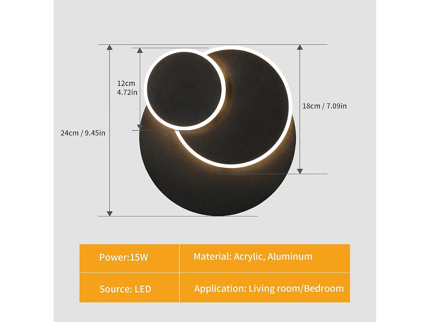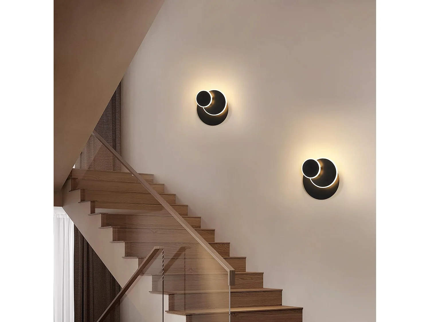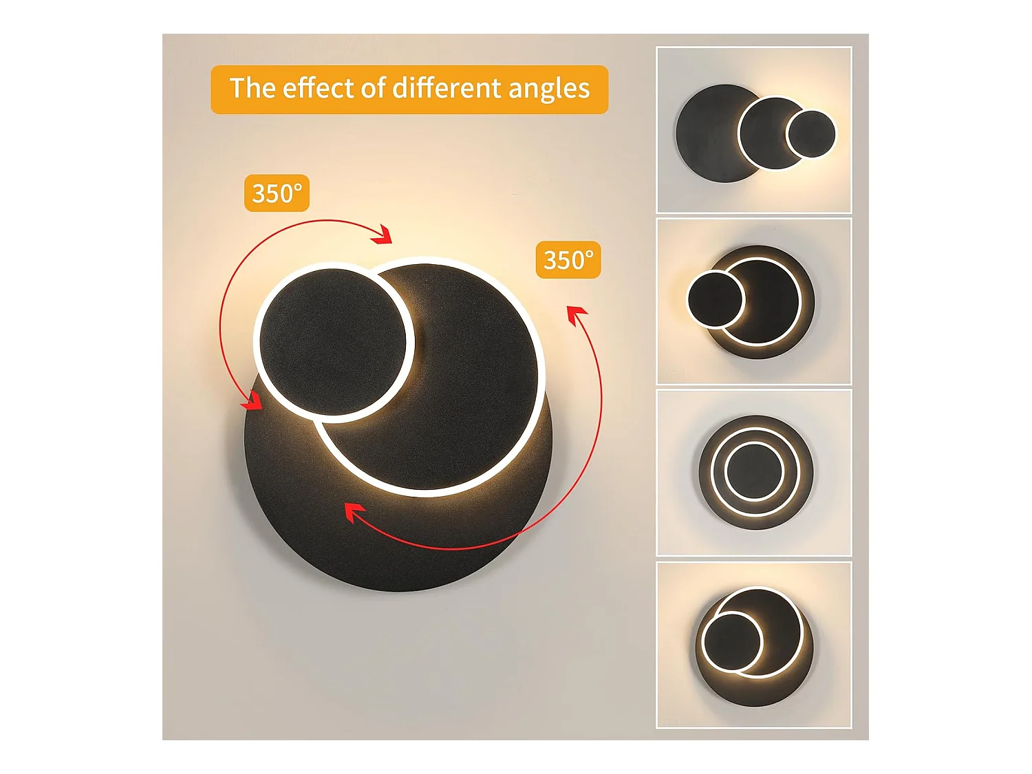 Applique murale LED moderne, 15W, 1687lm, rotative et créative, 3 en 1, ronde et noire, adaptée à la chambre, lumière blanche chaude 3000K