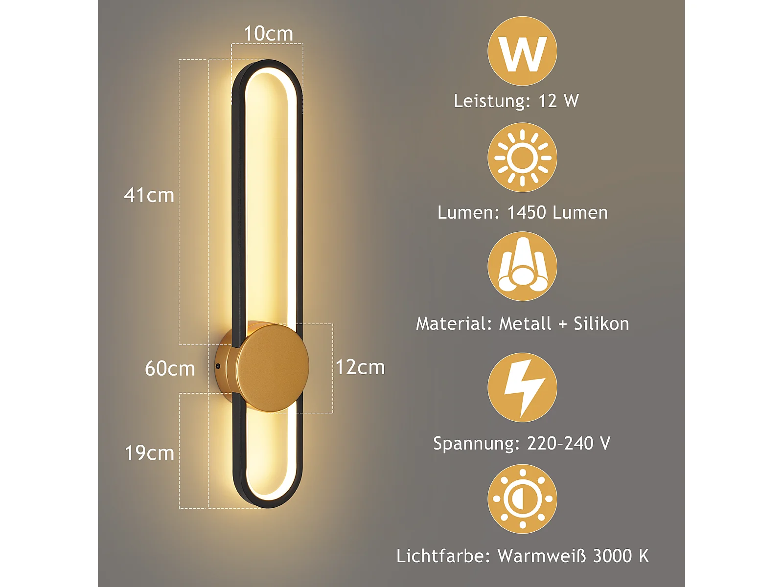 NETTLIFE Applique murale LED d'intérieur - Lampe d'escalier 12W 41cm Lampe de couloir dorée Design moderne 3000K Blanc chaud