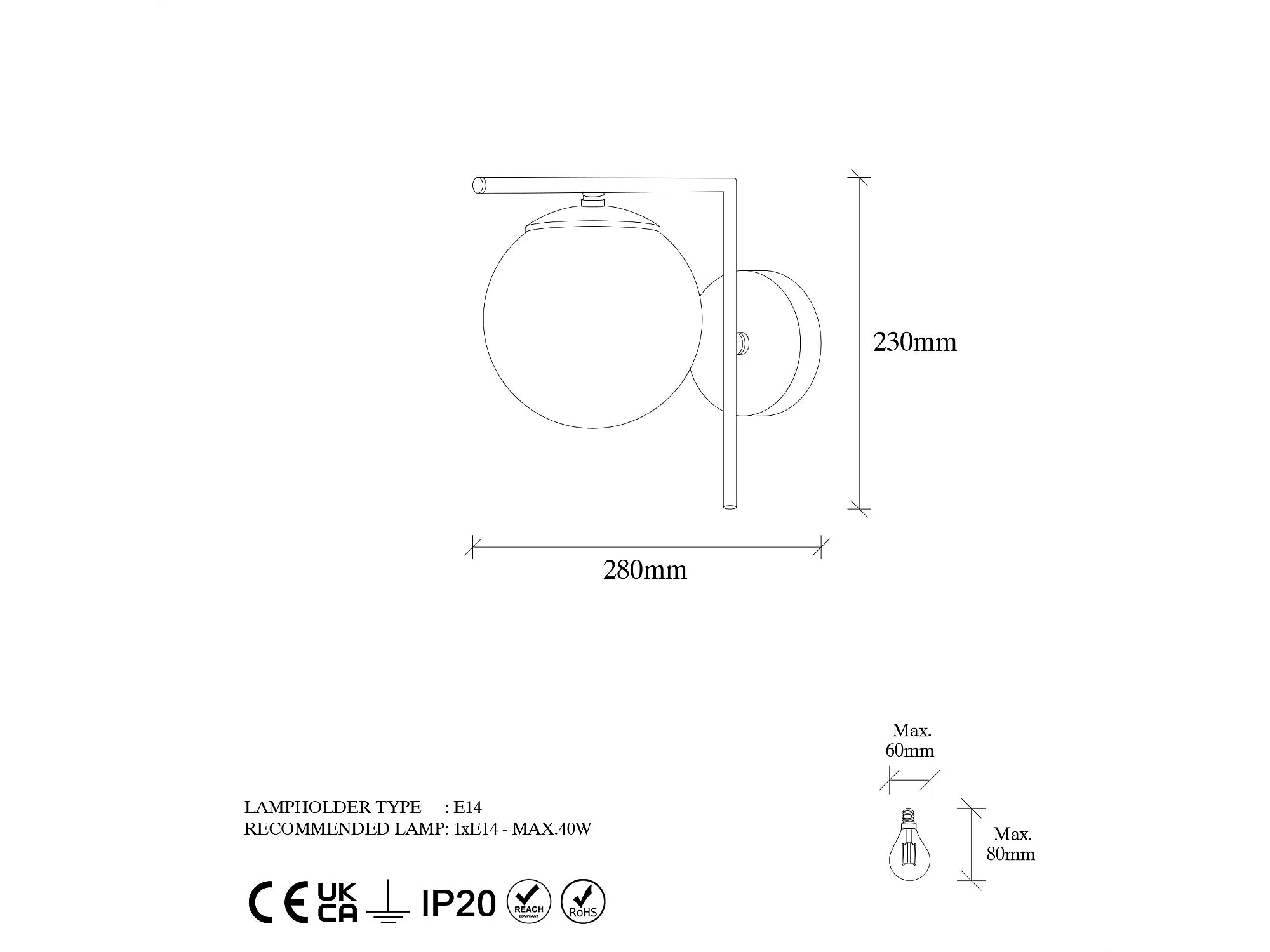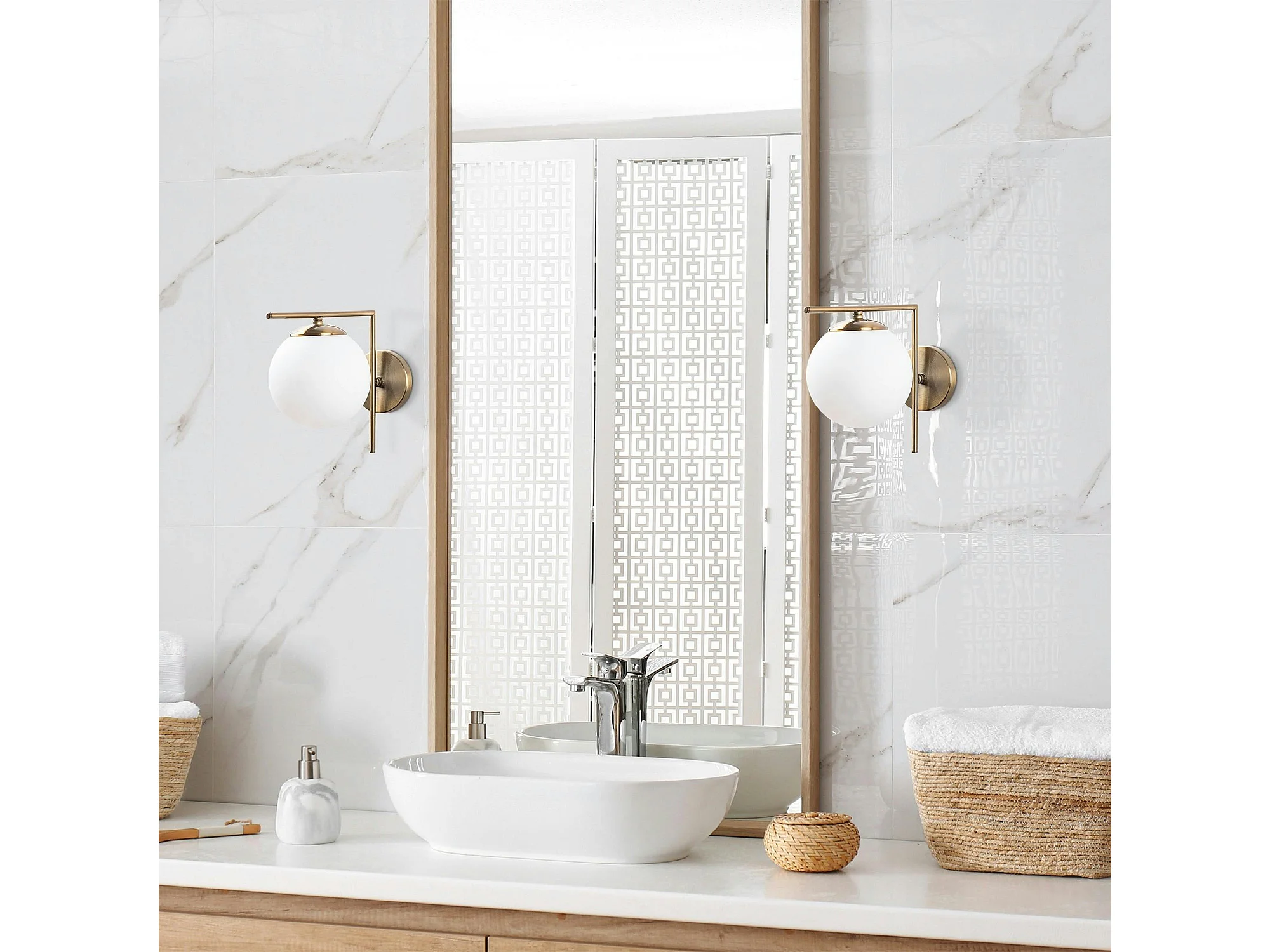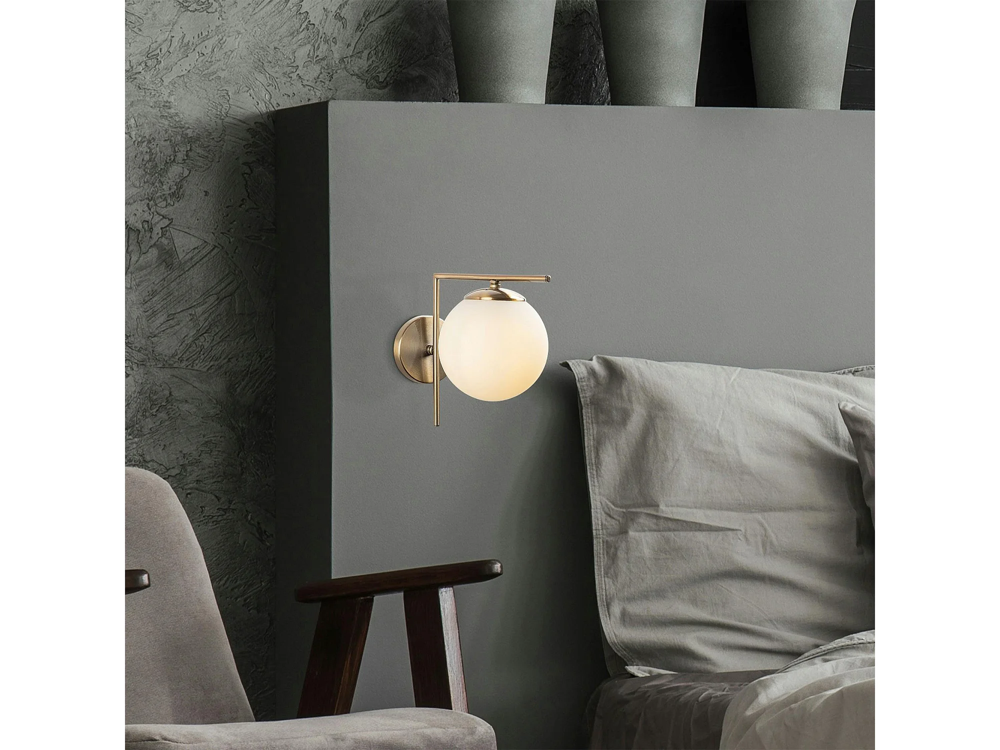 Applique murale art déco dorée, globe blanc sur tige SIERRE