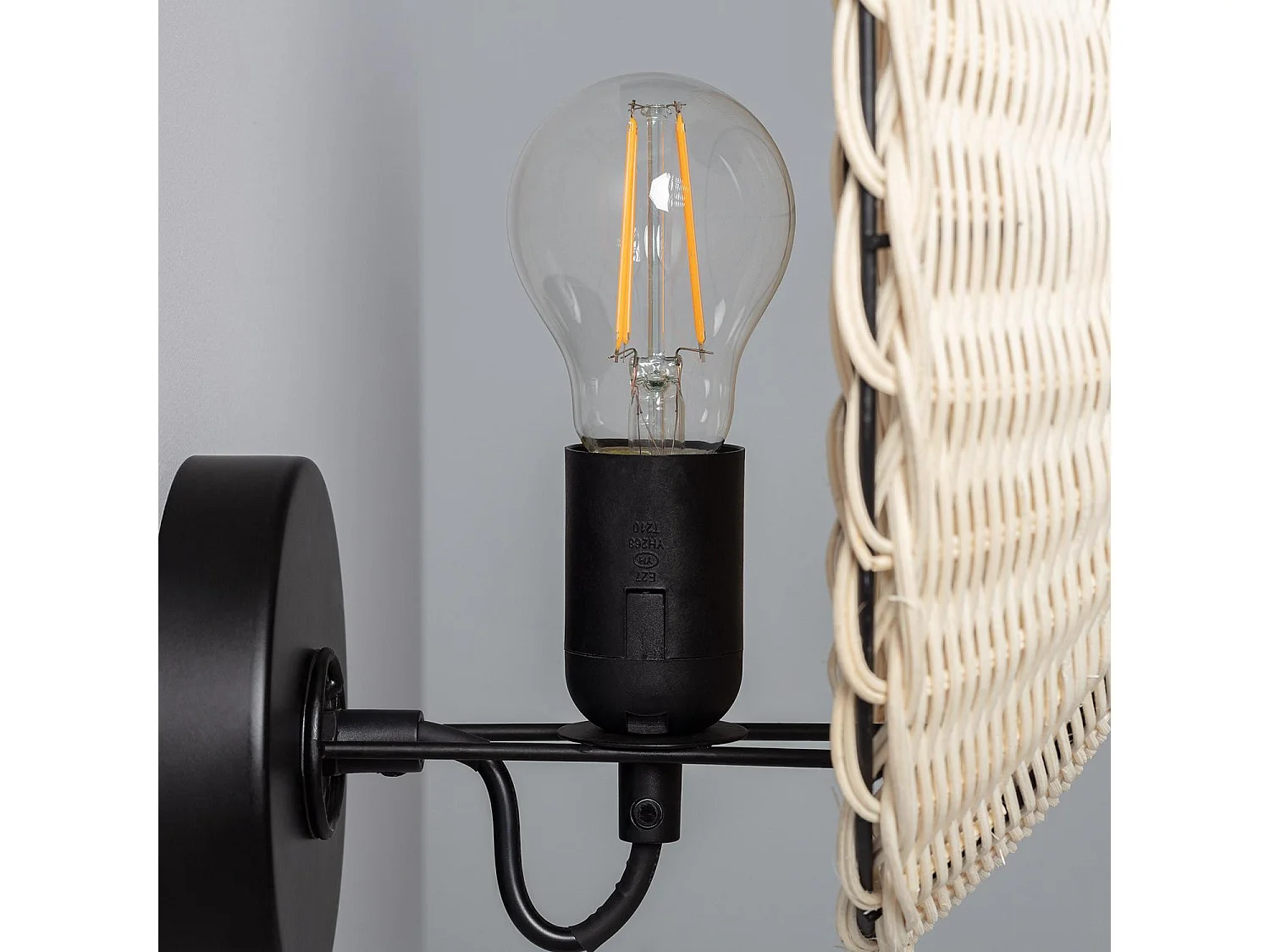 Applique d'intérieur en bois, abat-jour vintage en corde de chanvre, culot E27, noir, convient pour chambre (ampoule non incluse)