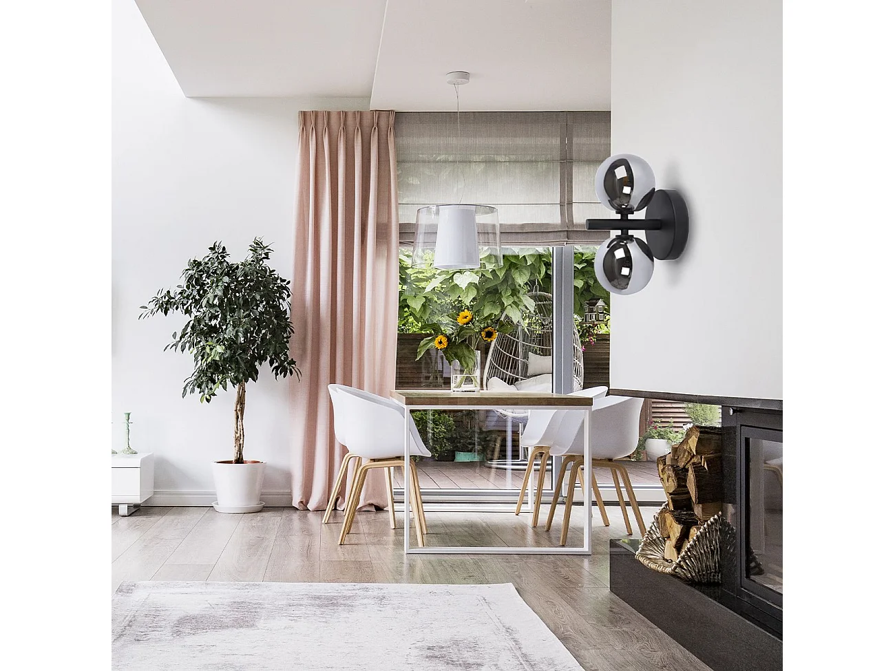 Lampadaire design néo-rétro 2 boules verre blanc opaque max. 25 W piètement marbre blanc acier doré