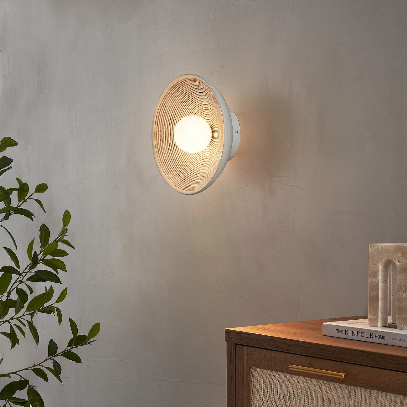 Applique murale circulaire blanche de style moderne Meltis avec sphère en verre 1xE14