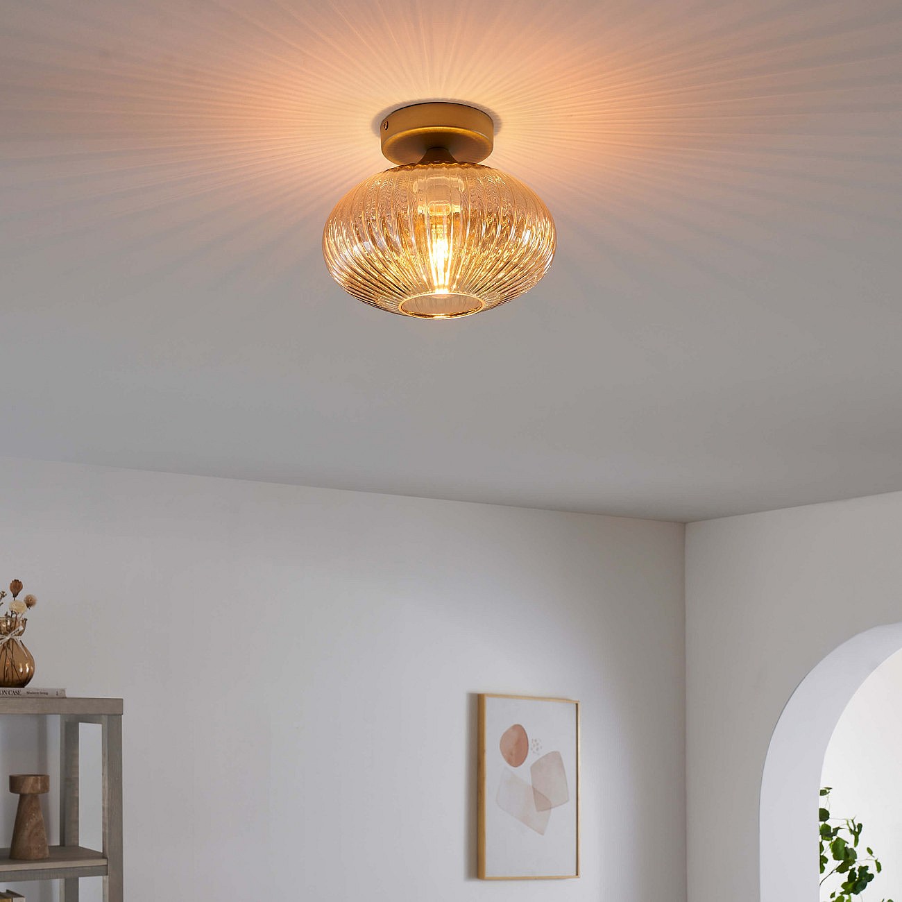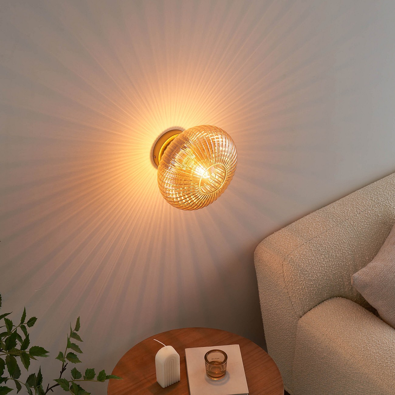 Applique cloche verre ambré texturé - Vela