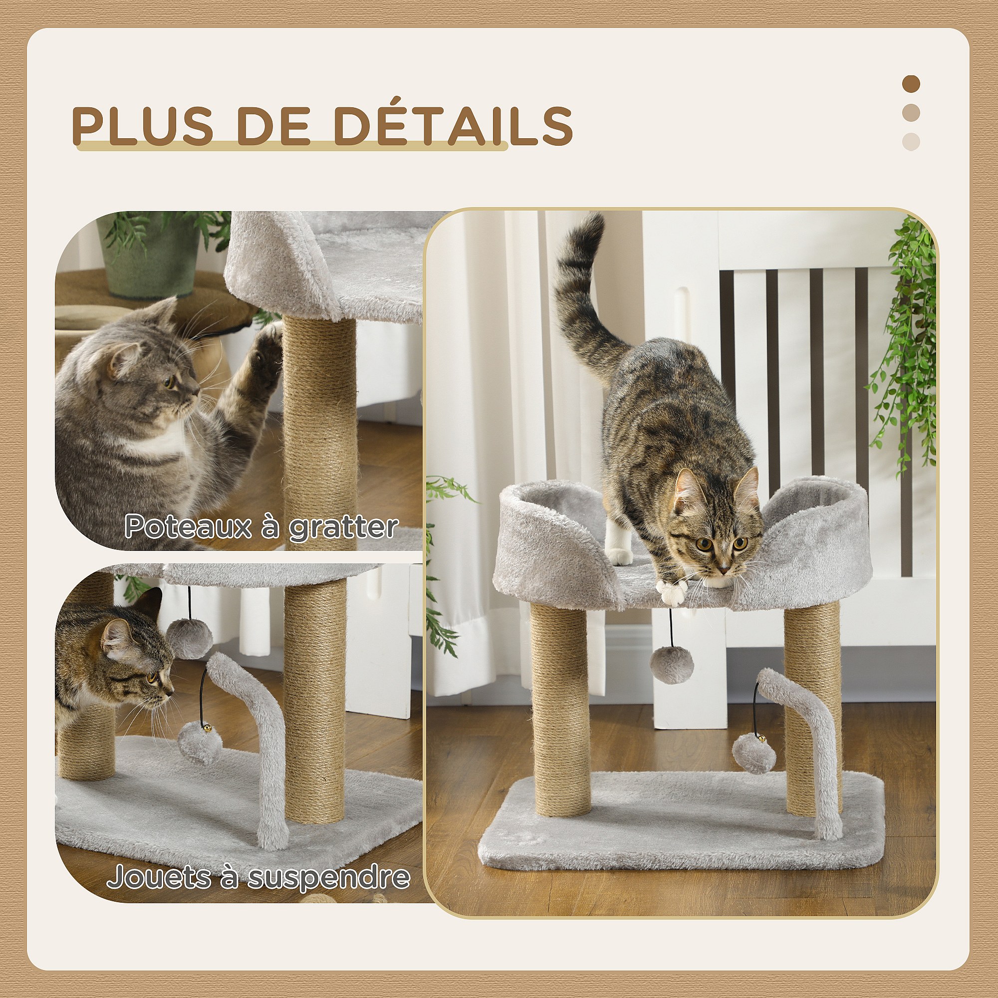Arbre à chat griffoirs sisal naturel et massant grande niche plateforme panier jeu boule suspendue peluche gris