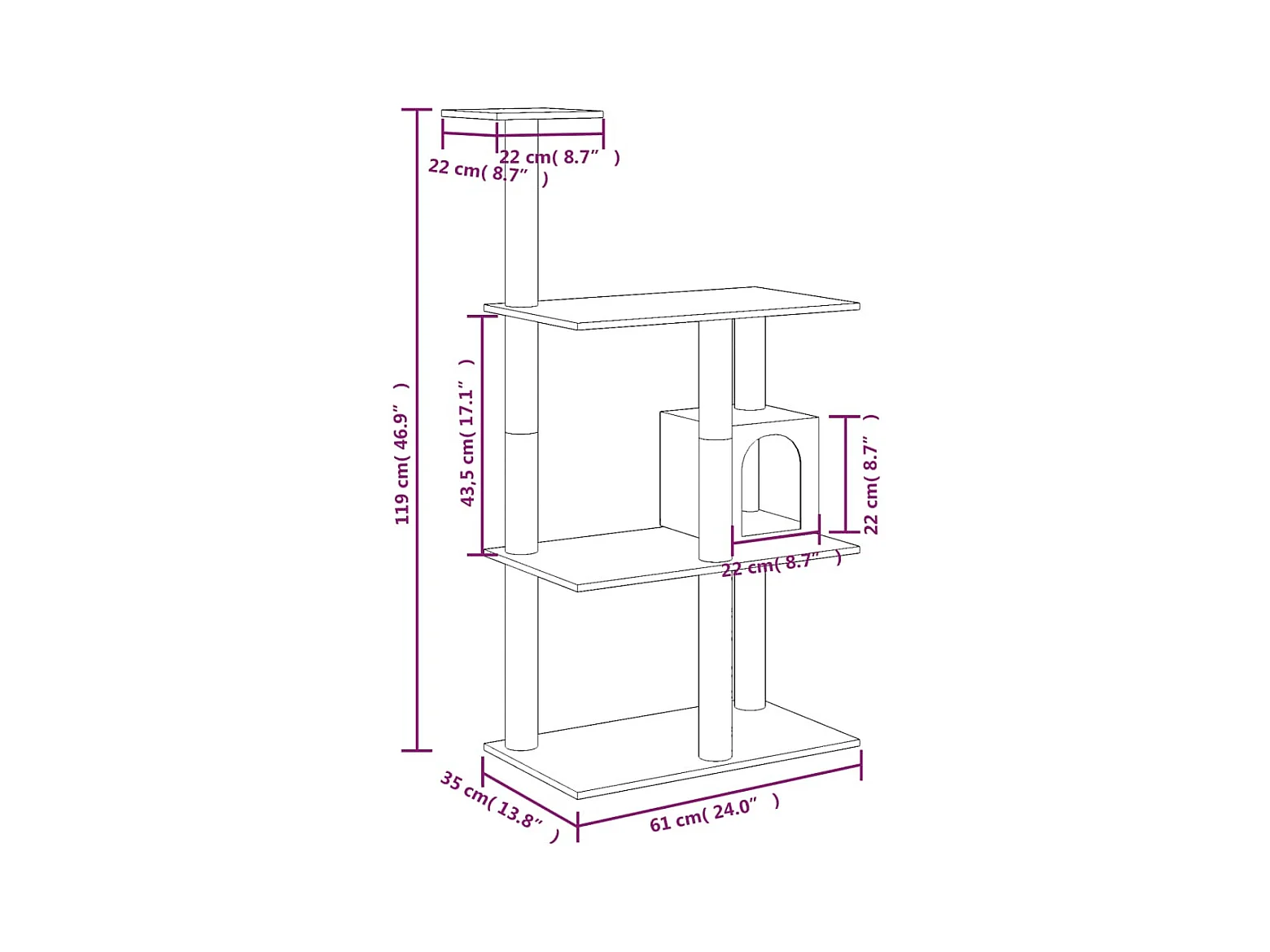 Arbre à chat avec griffoirs en sisal Crème 119 cm