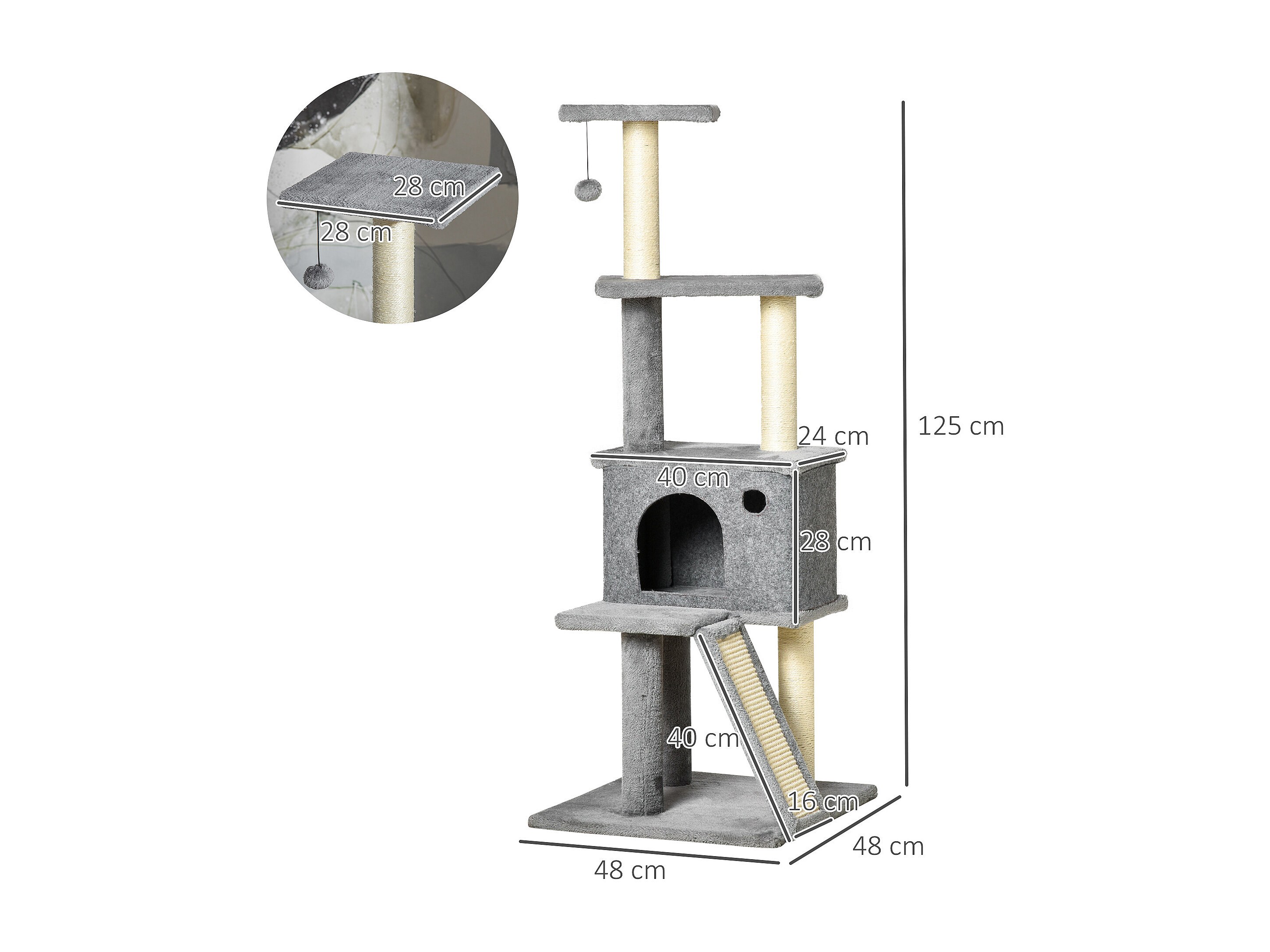 Arbre à chat griffoirs sisal naturel et massant grande niche plateforme panier jeu boule suspendue peluche gris