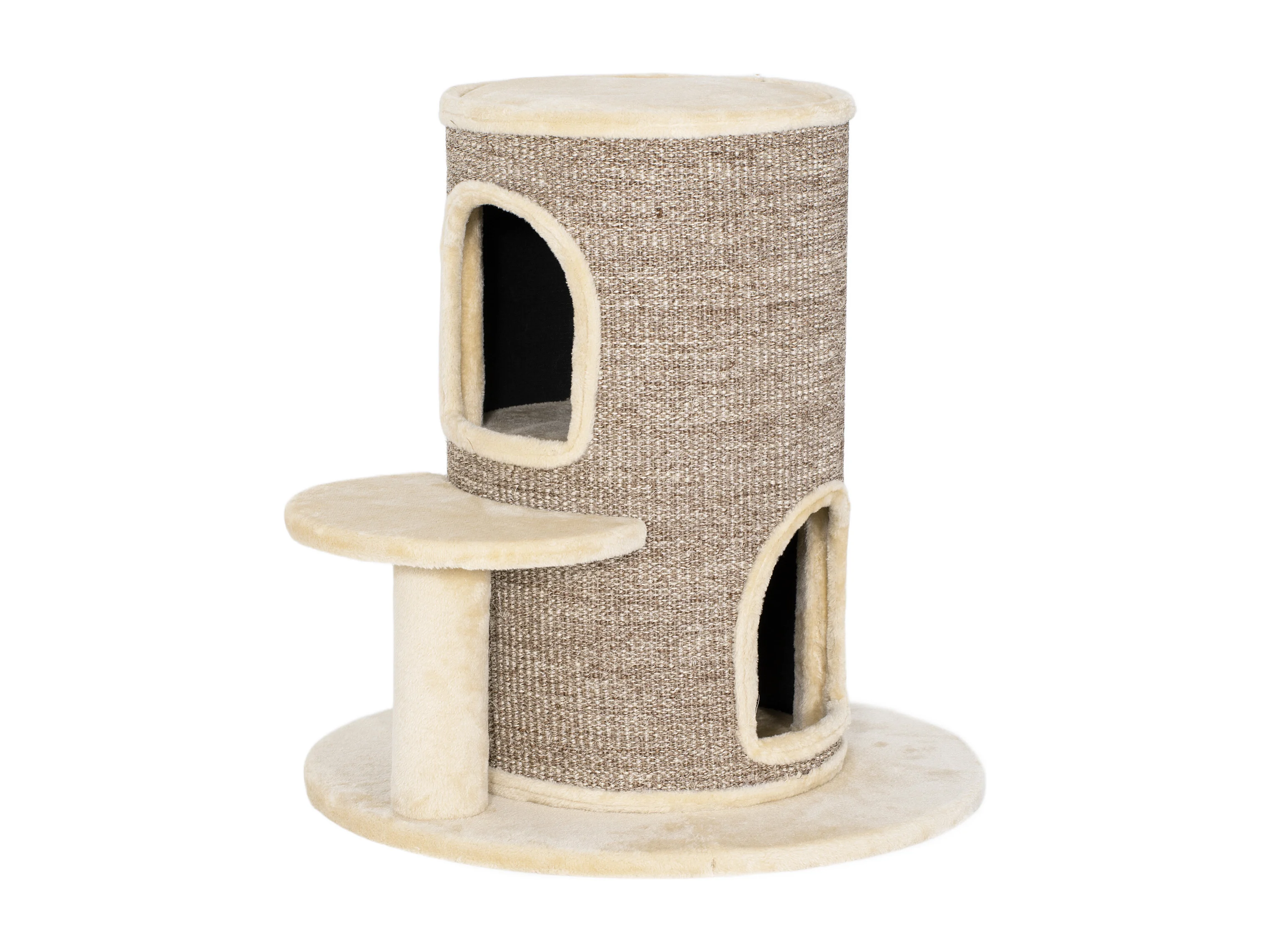 Arbre à chat cylindrique - tour à griffer pour chat H.61cm - tonneau griffoir - 2 niveaux + plateforme - sisal peluche beige