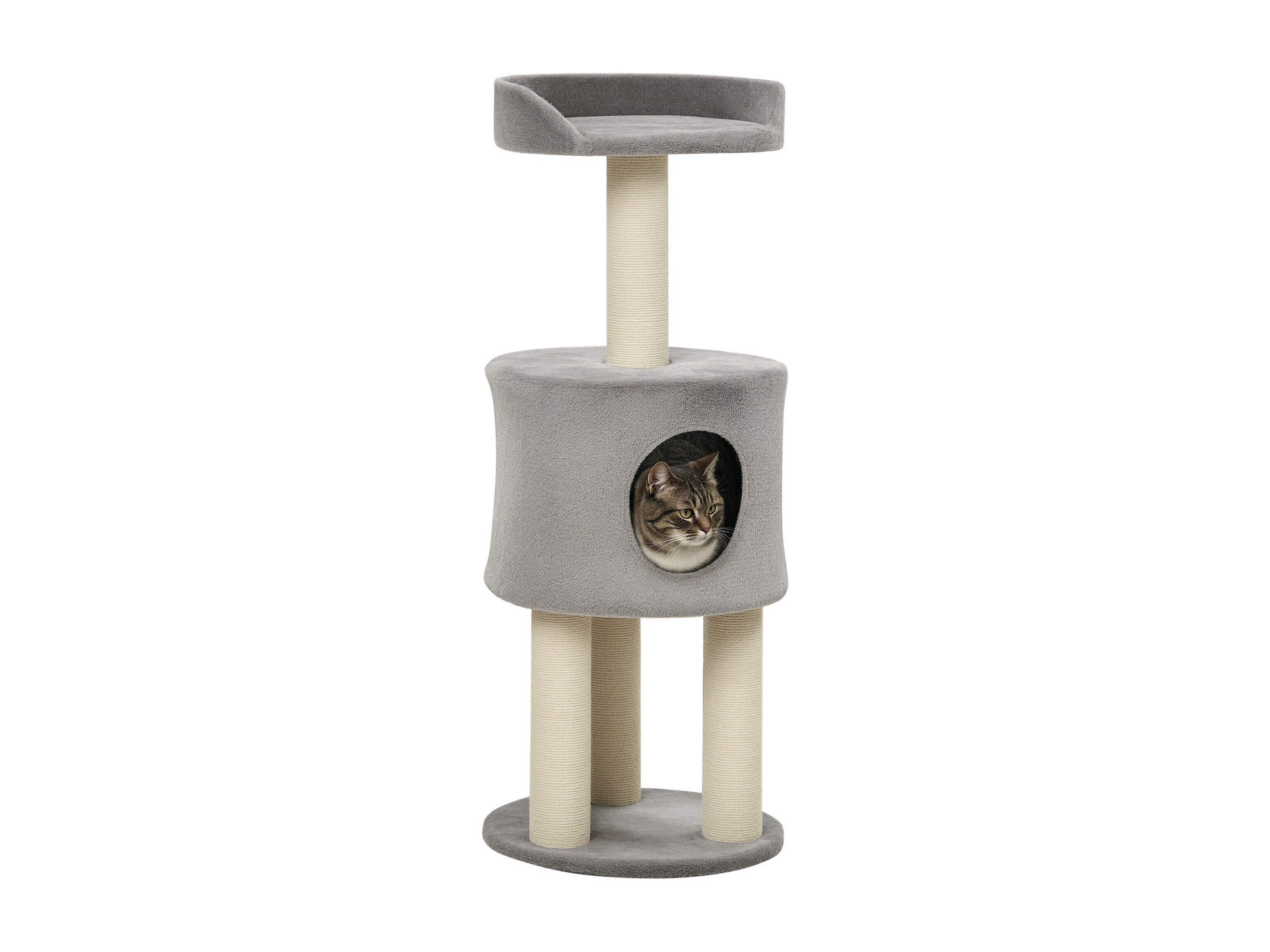 Arbre à chat grattoir griffoir niche panier d'observation boule peluche gris