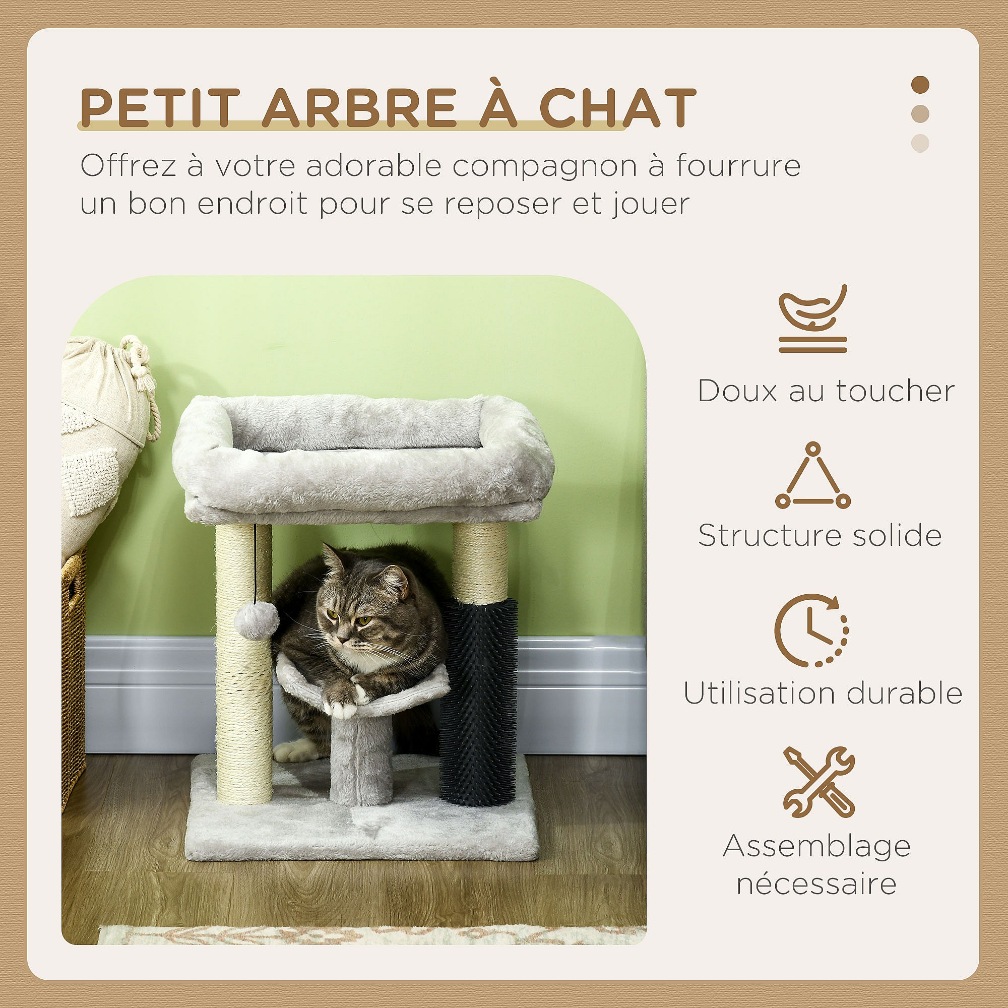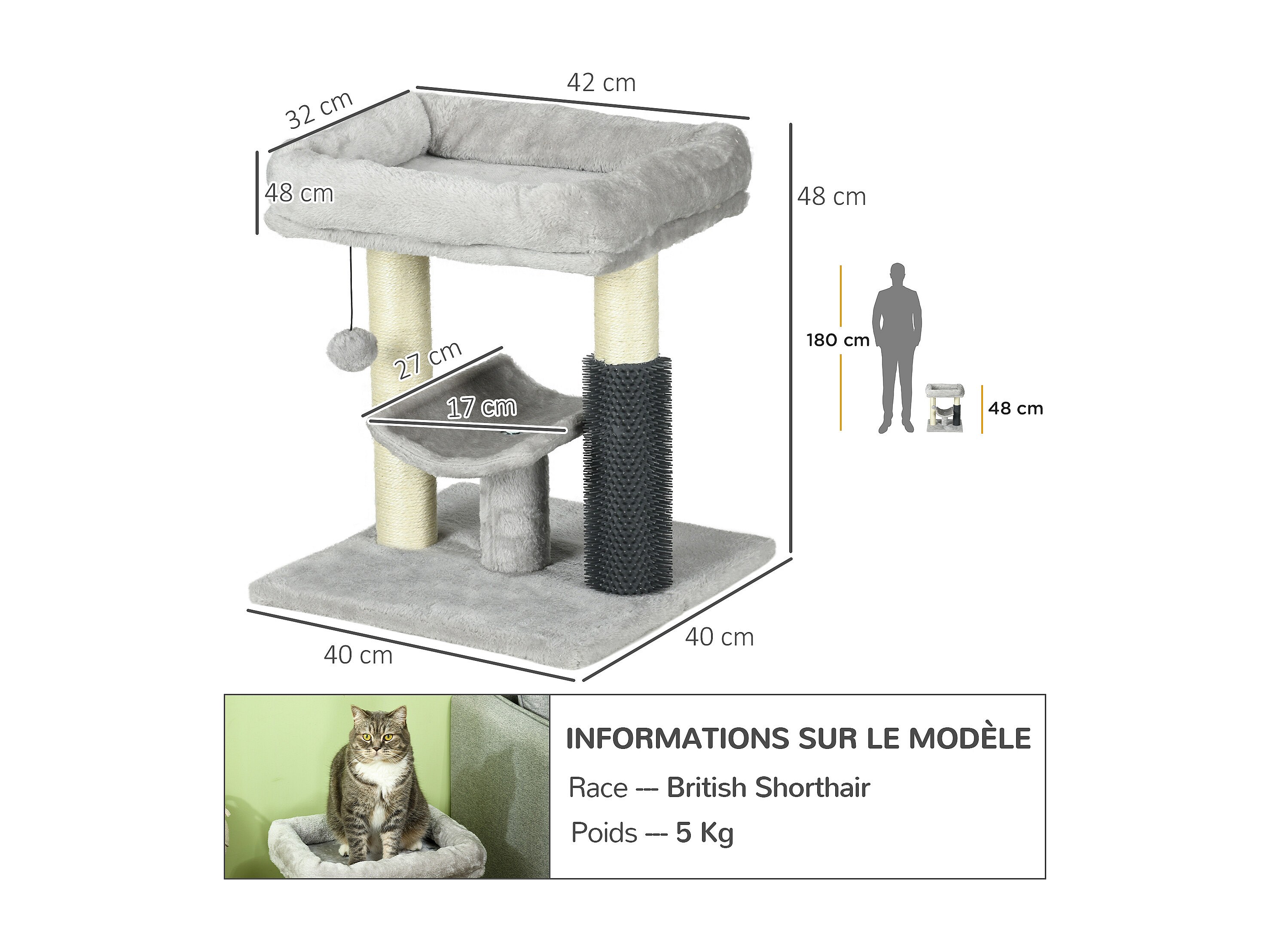 Arbre à chat griffoirs sisal naturel et massant plateforme panier jeu boule suspendue peluche gris