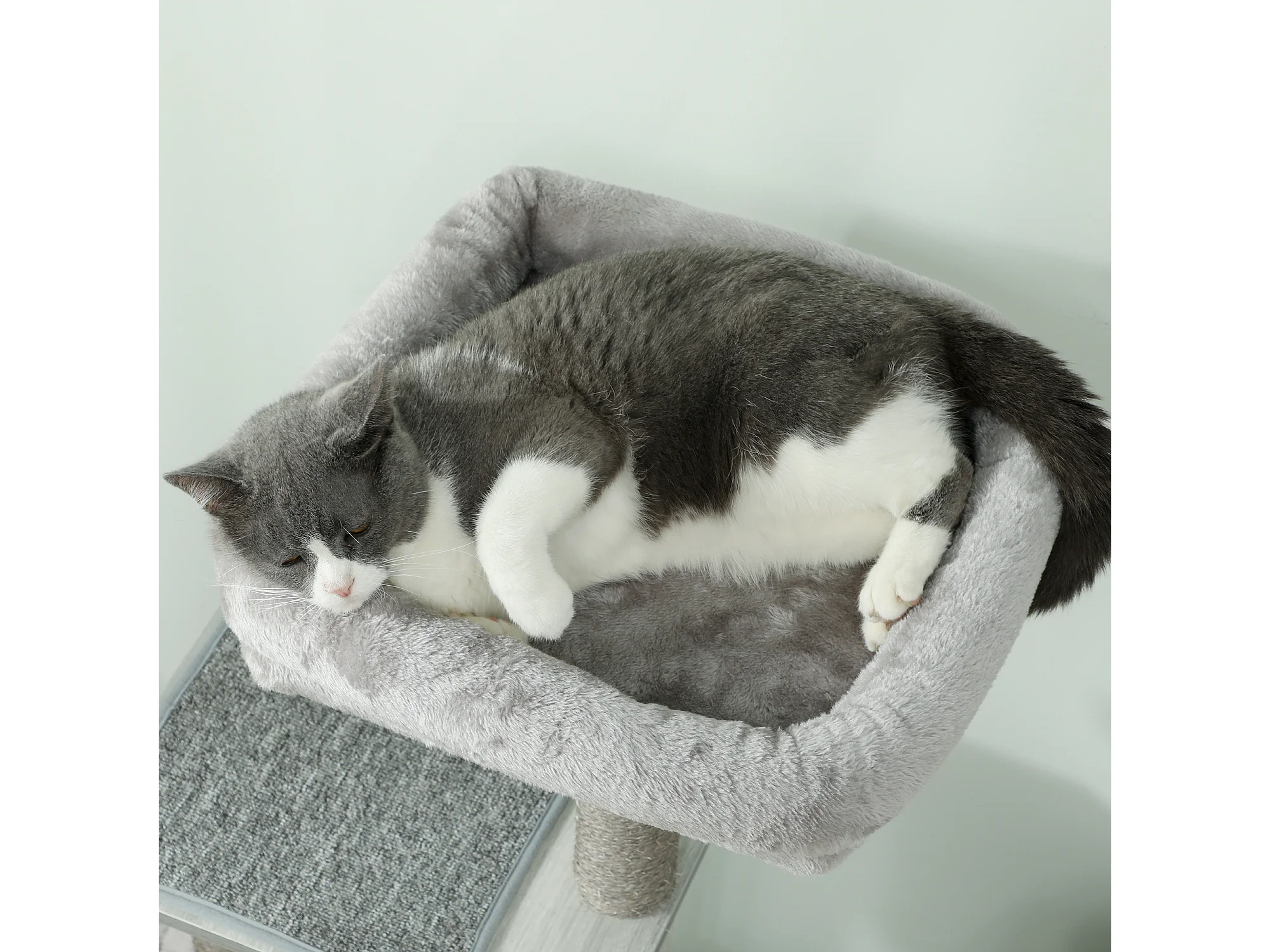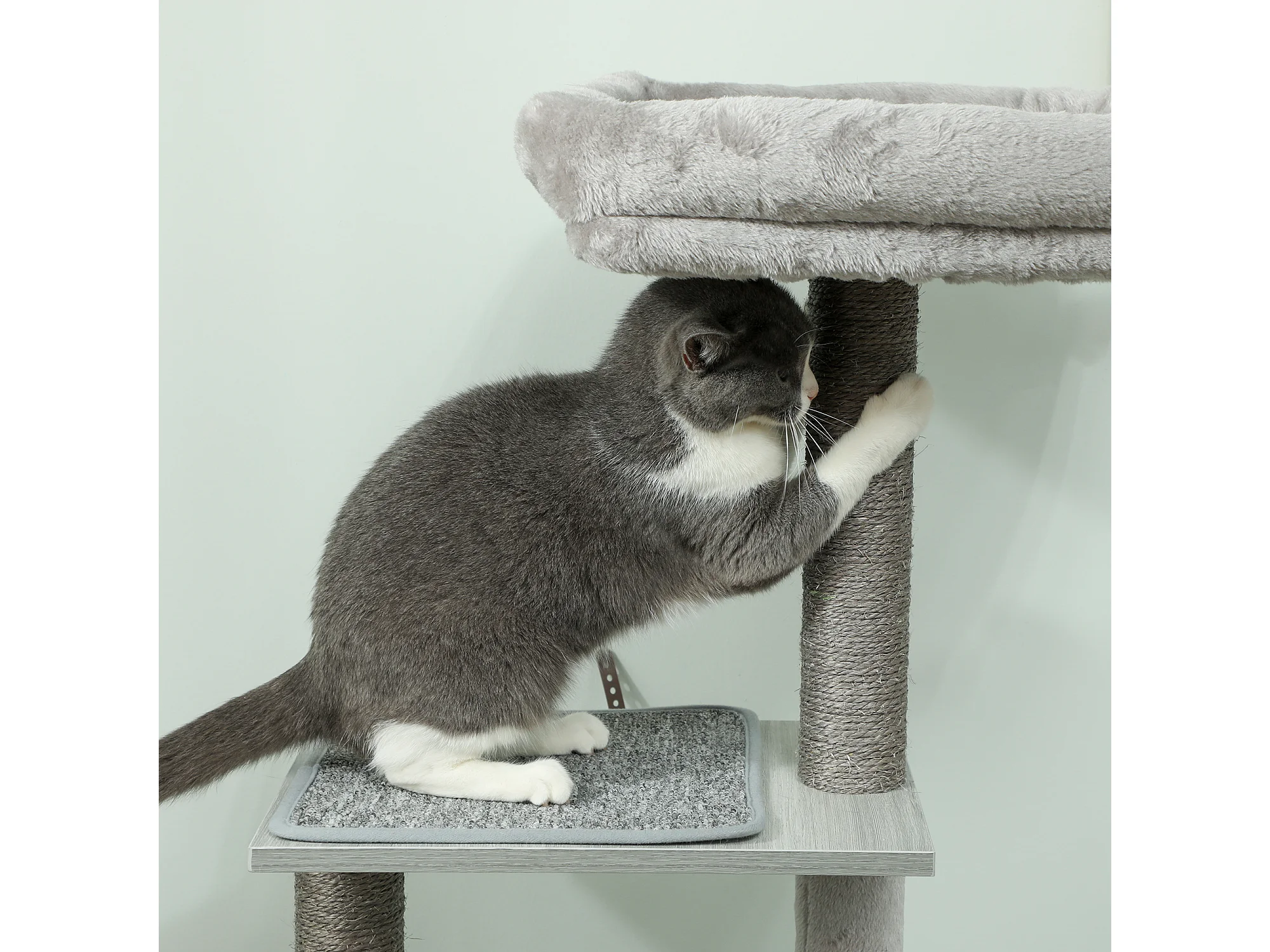 Arbre à chat multi-équipement griffoirs grattoirs niche hamac panier coussins amovibles H126 cm peluche courte sisal naturel gris