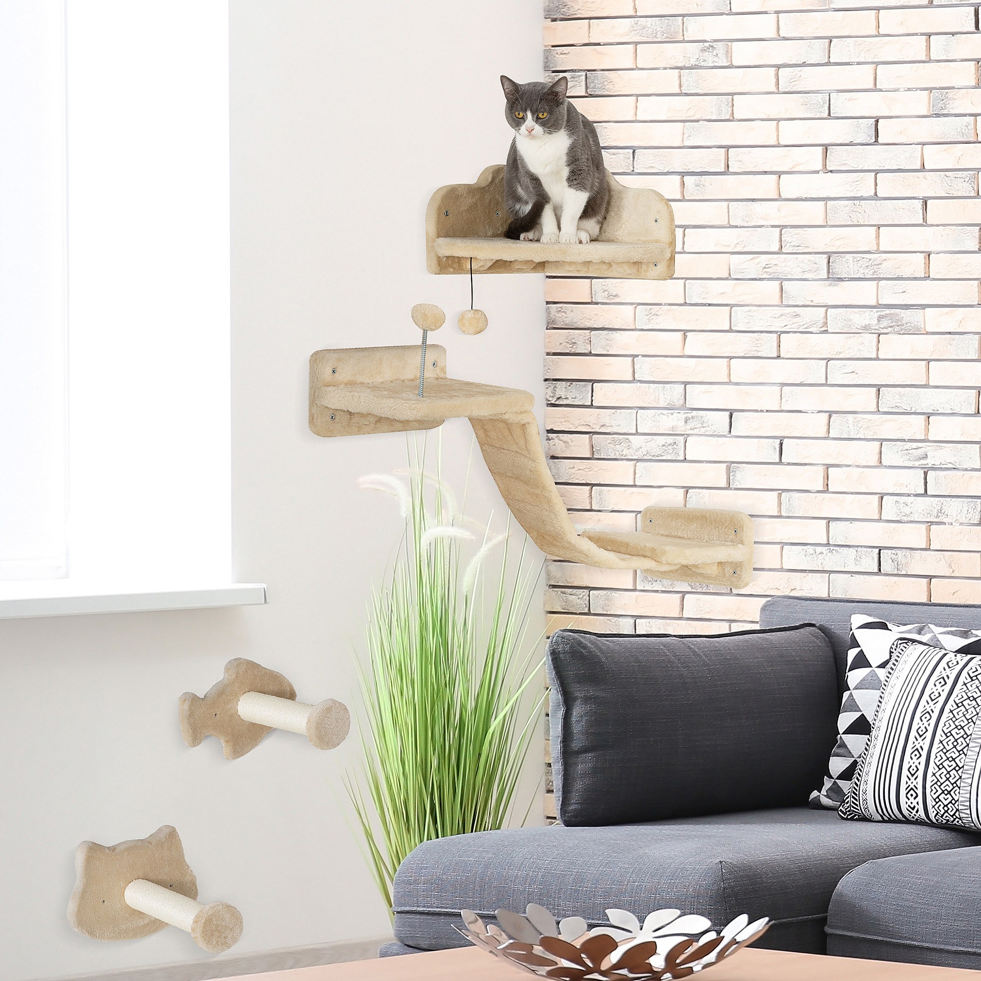 Arbre à chat mural - étagères murales chat - parcours mural 4 pièces - beige