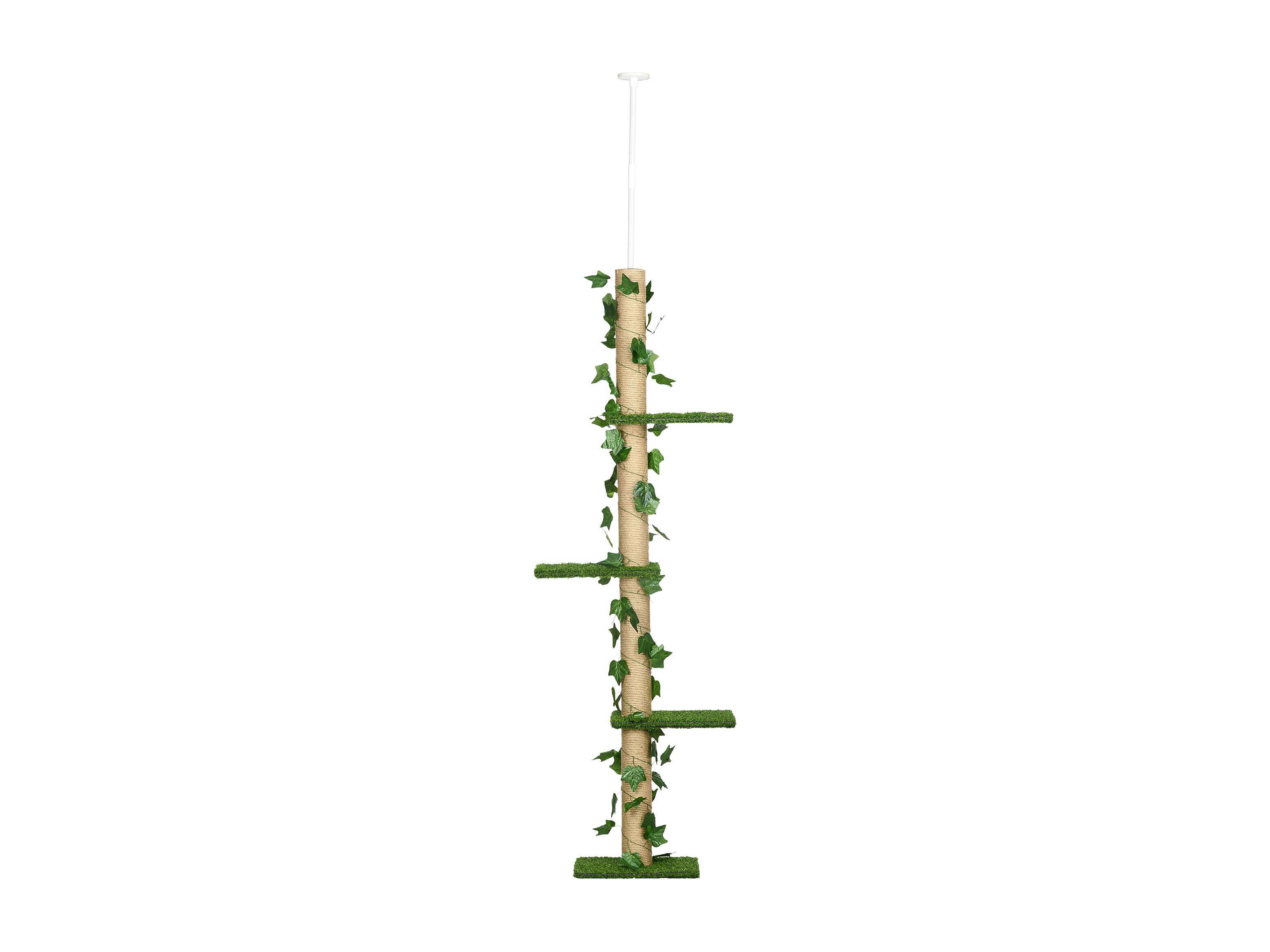 Arbre à chat poteau à griffer design hauteur réglable dim. 37L x 21l x 202- 242H cm 4 niveaux beige vert