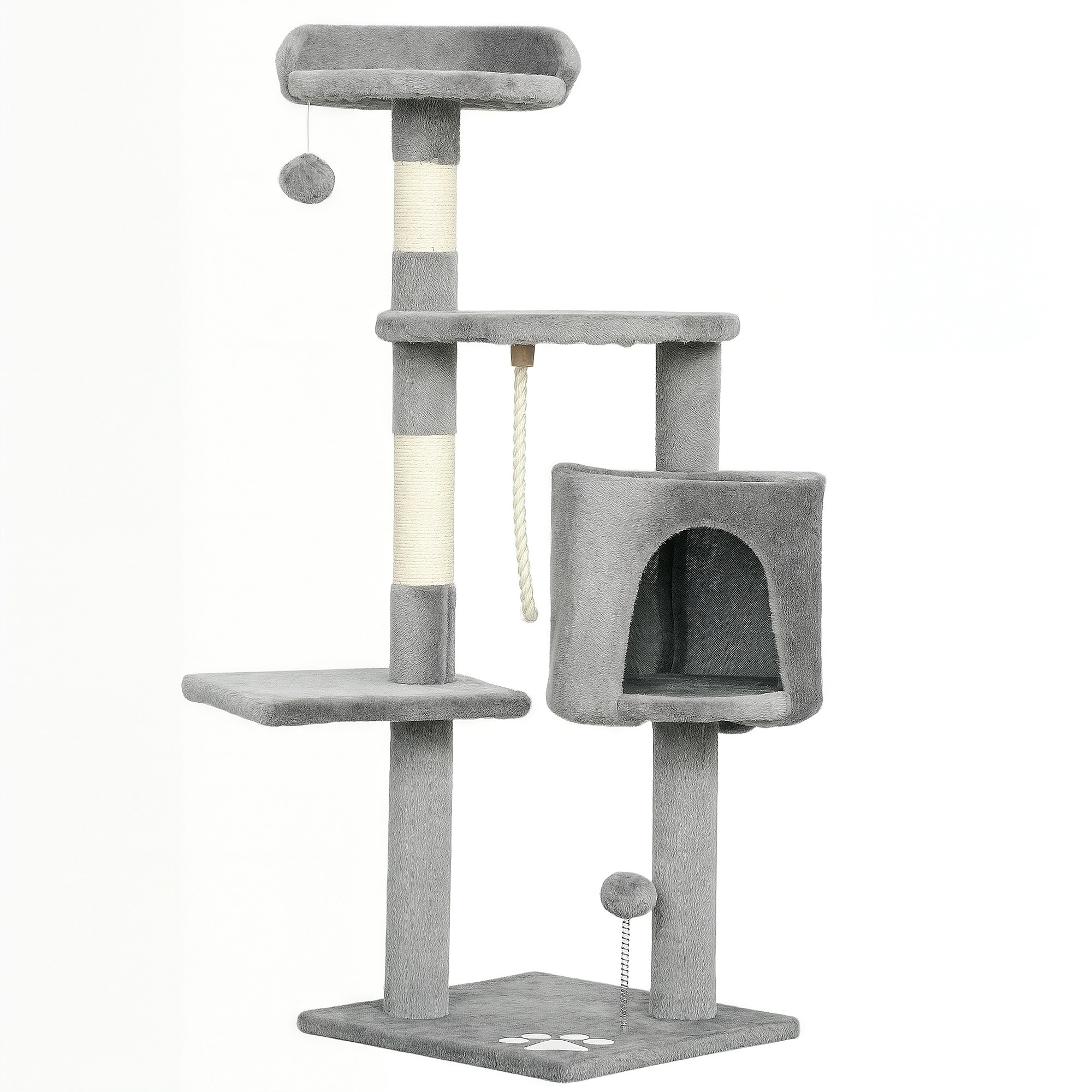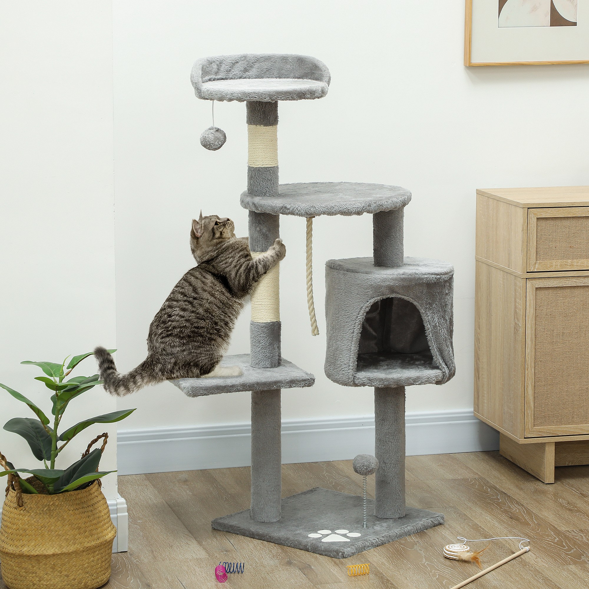 Arbre à chats multi-équipements griffoirs grattoirs plateformes niche corde jouets 40L x 40l x 114H cm gris