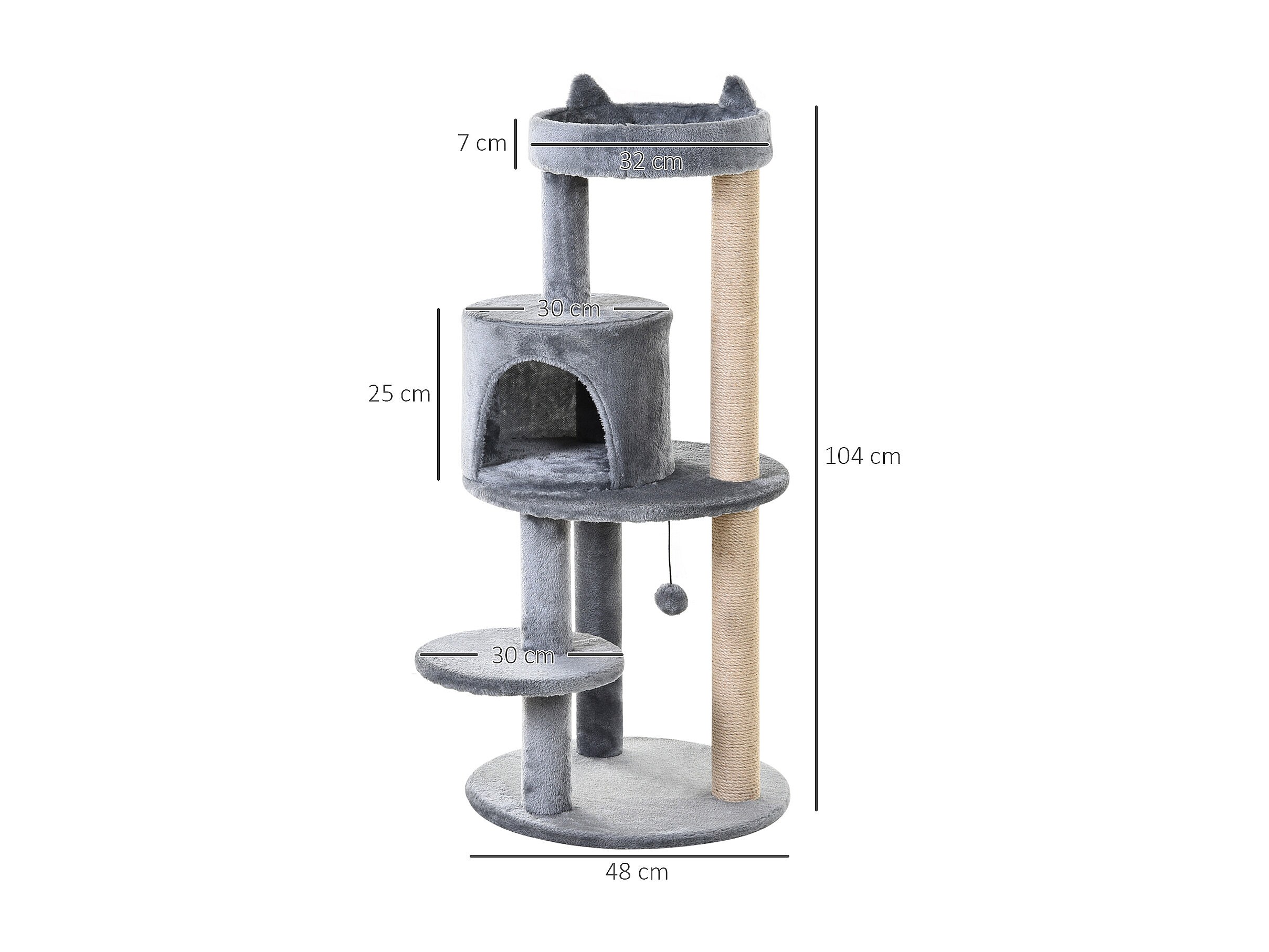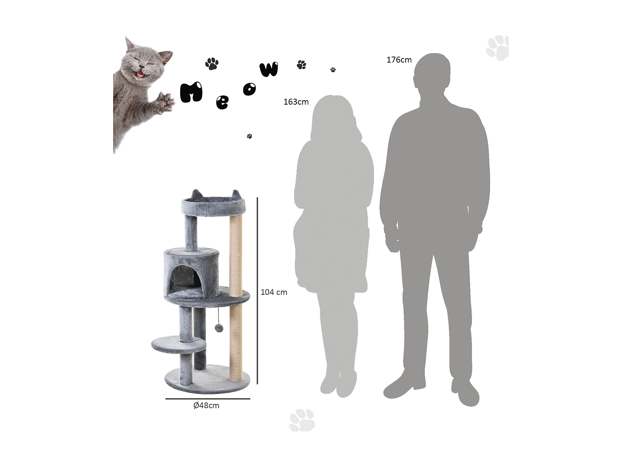 Arbre à chats multi-équipements griffoirs grattoirs plateformes niche jeu boule suspendue Ø 48 x 104H cm gris