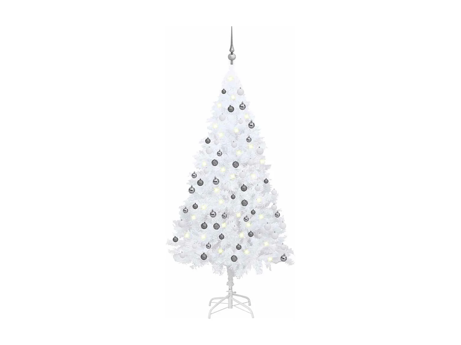 Arbre de Noël artificiel pré-éclairé et boules blanc 120 cm PVC