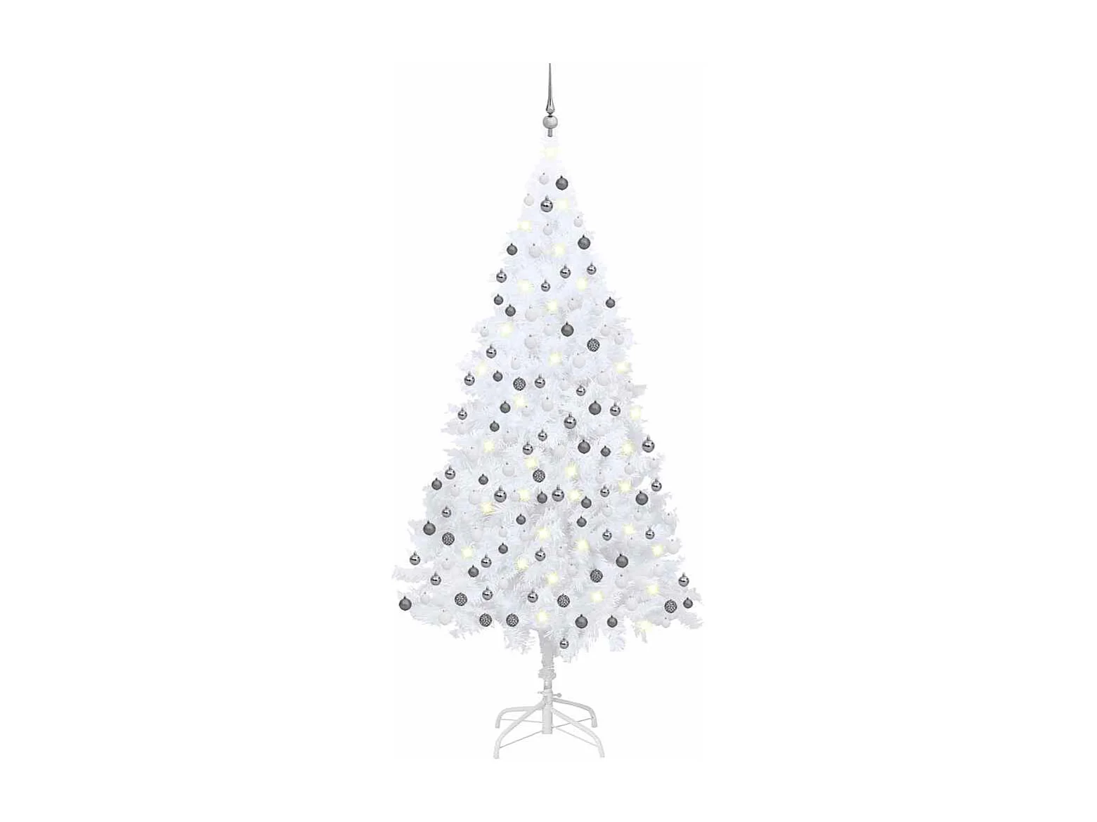Arbre de Noël artificiel pré-éclairé et boules blanc 210 cm PVC