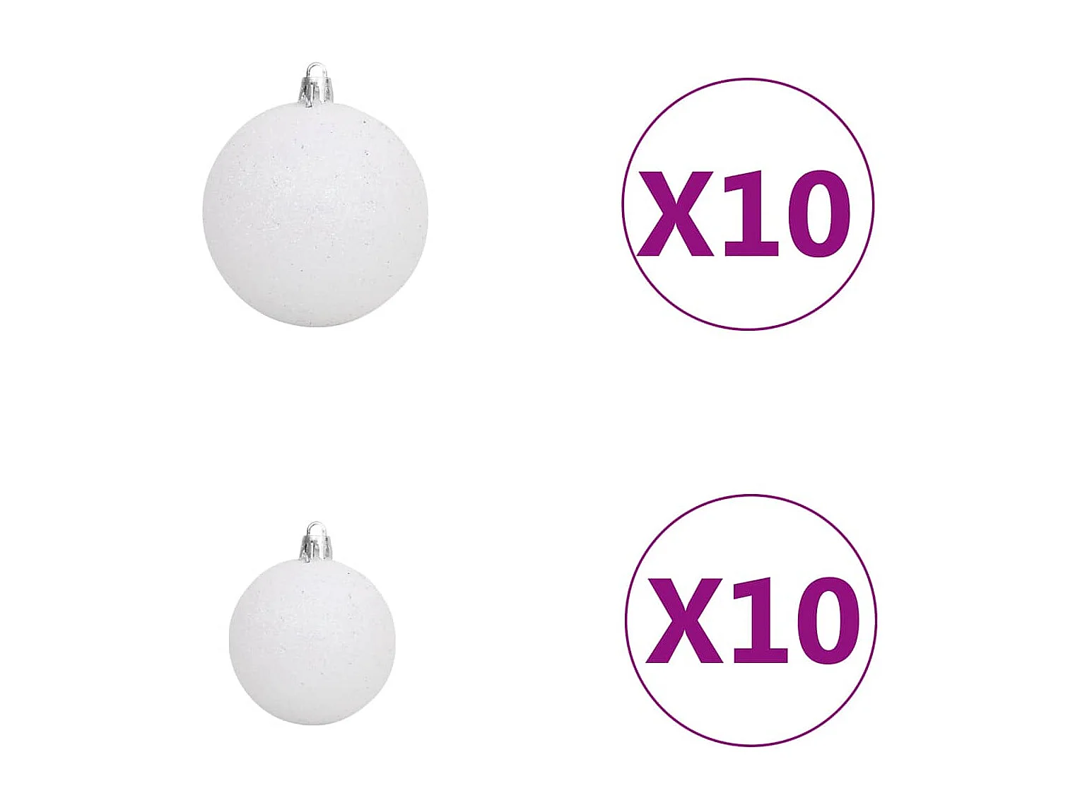 Demi-arbre de Noël artificiel pré-éclairé et boules blanc 210cm