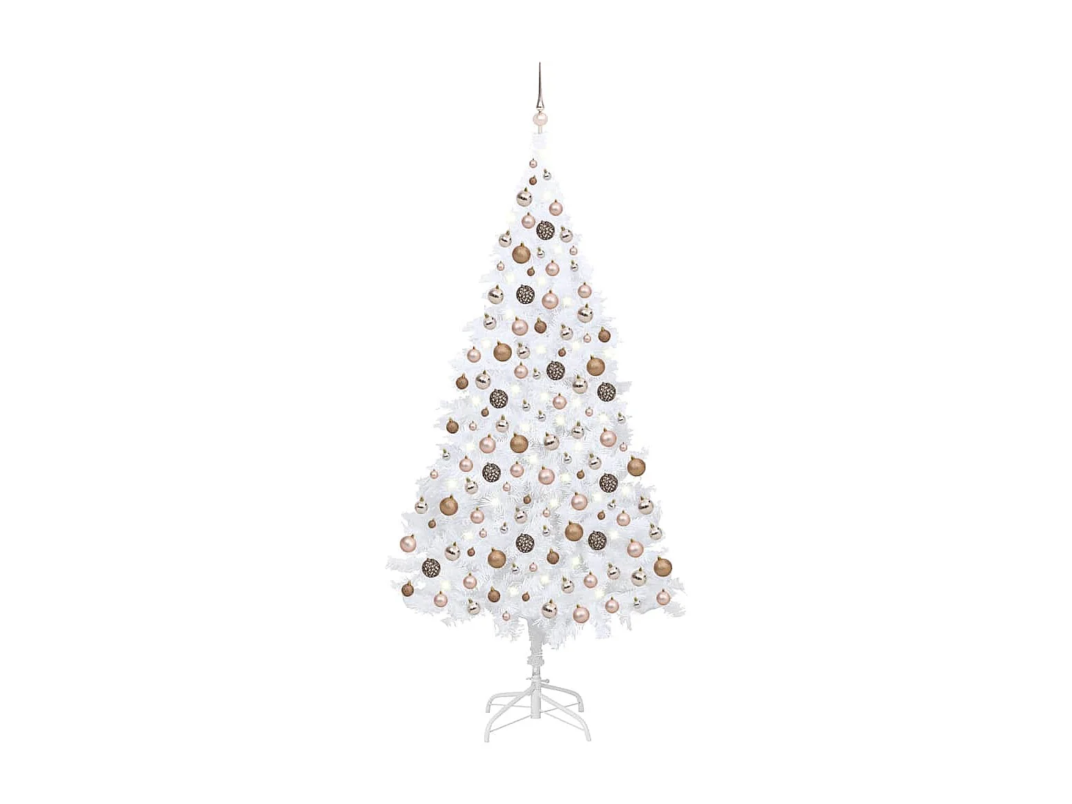 Arbre de Noël artificiel pré-éclairé et boules blanc 210 cm PVC