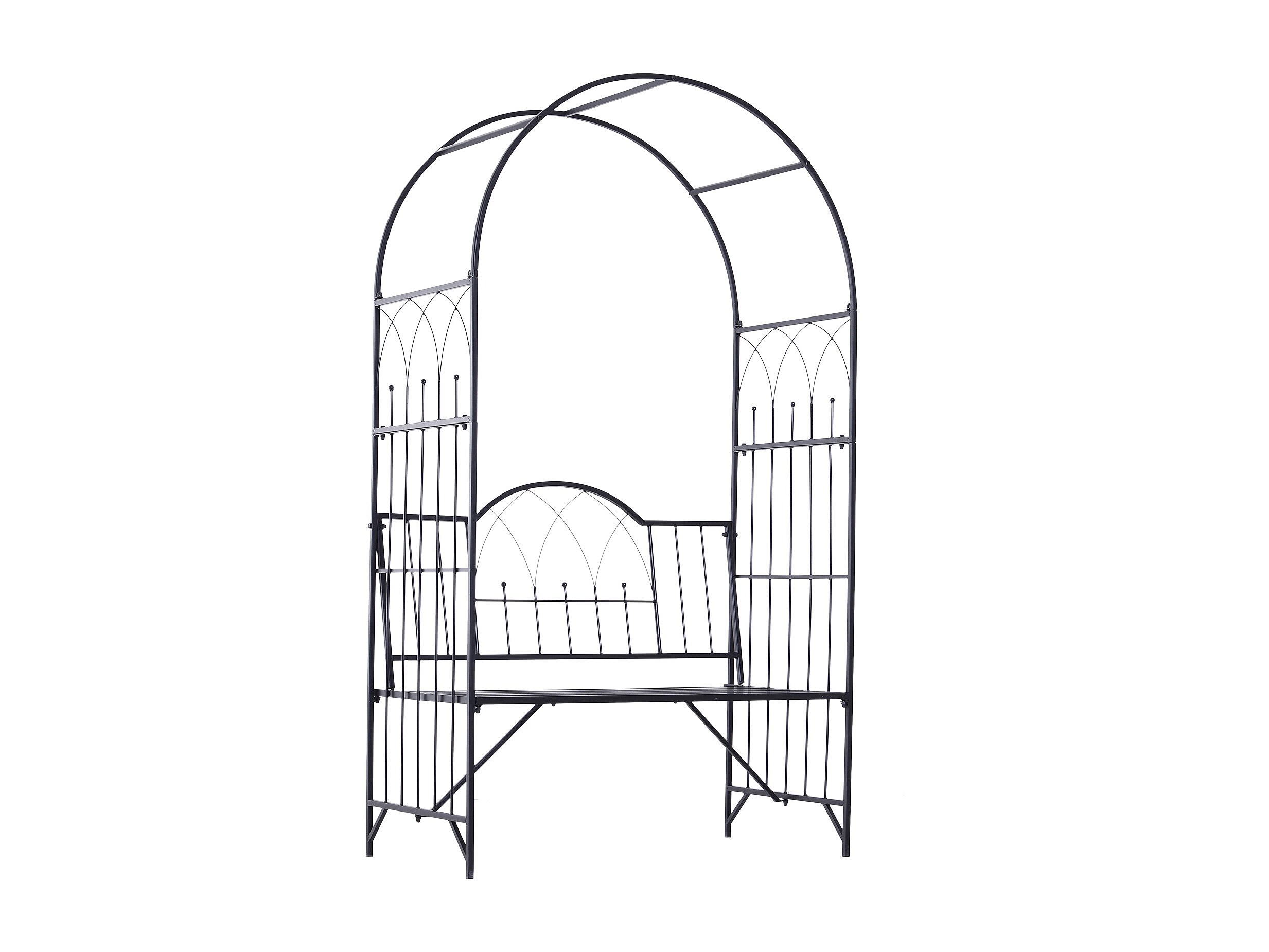 Arche de jardin avec banc 2 places dim. 115L x 54l x 203H cm métal thermolaqué noir