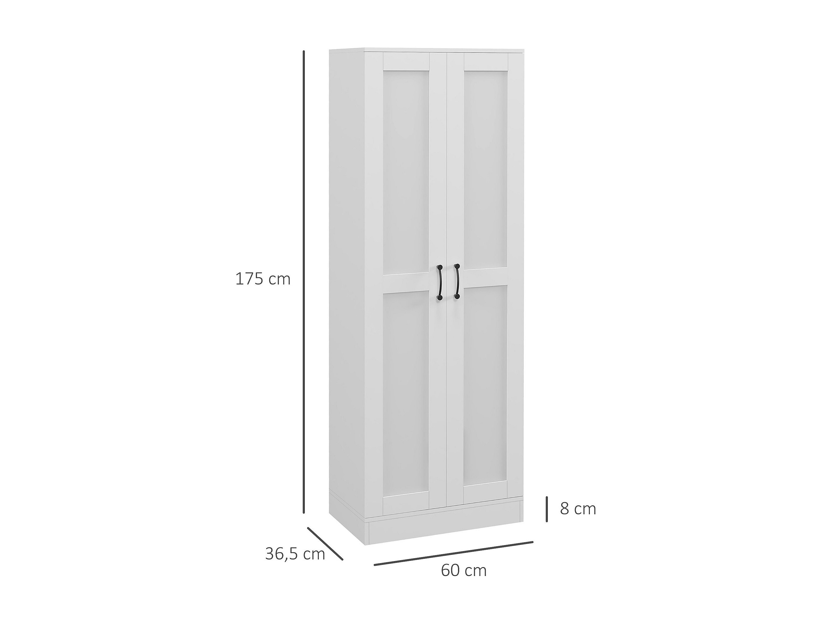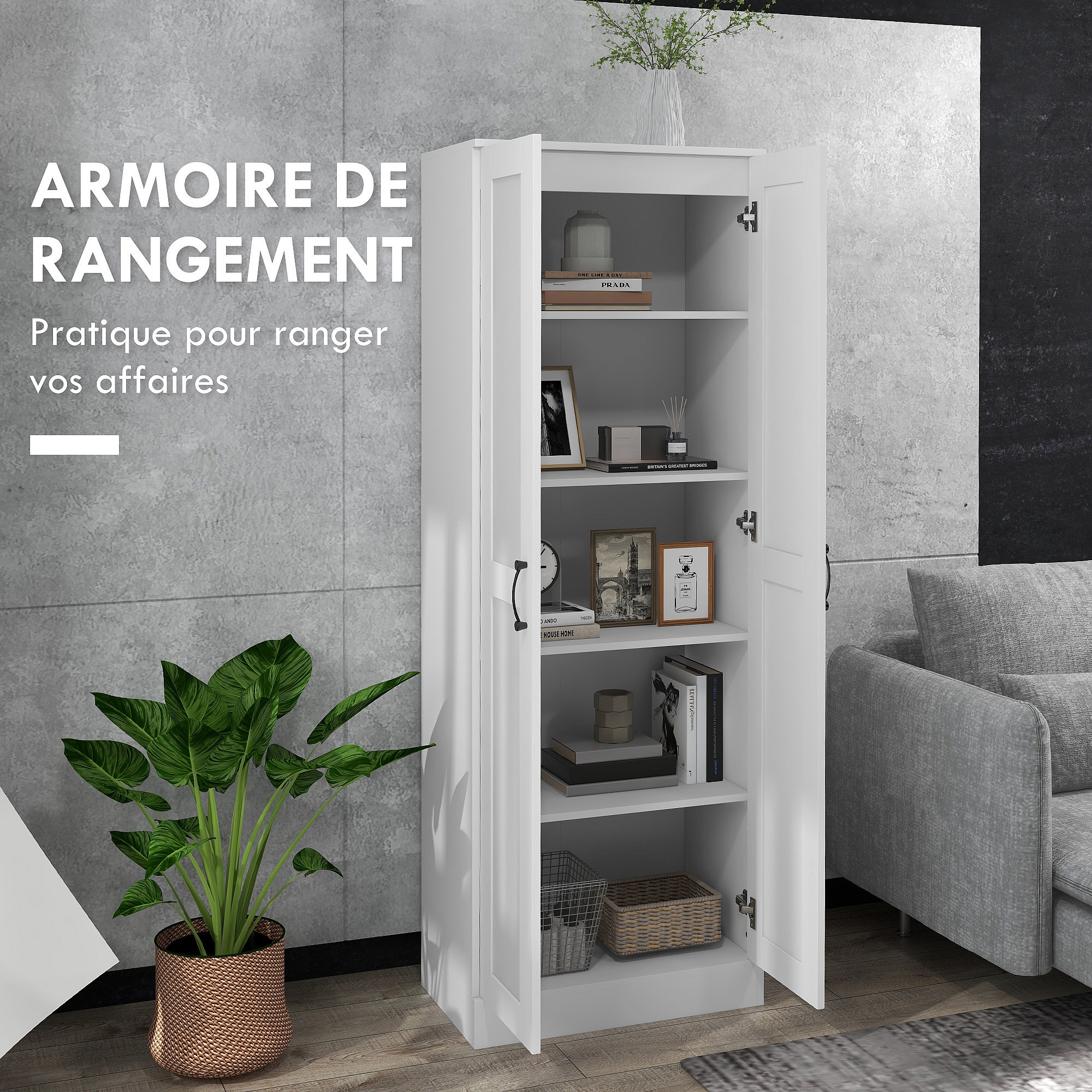 Armoire 2 portes 4 étagères dim. 60L x 36,5l x 175H cm poignées métal noir panneaux blanc